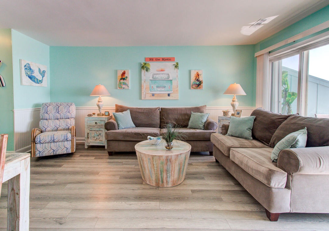 Riggings N2 - The Mystic is a charming oceanfront retreat, perfect for a relaxing beach getaway. This cozy condo is located in an oceanfront complex with direct community beach access, a seasonal pool that typically opens around Memorial Day, and a community grill for outdoor cooking. Guests can enjoy the convenience of complimentary WiFi, central heating and air conditioning, and all the comforts of home while taking in the beauty of the coastal surroundings.