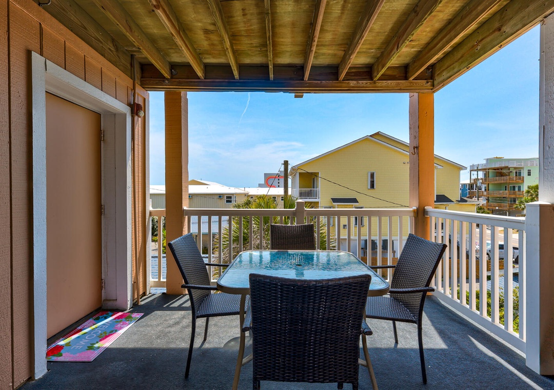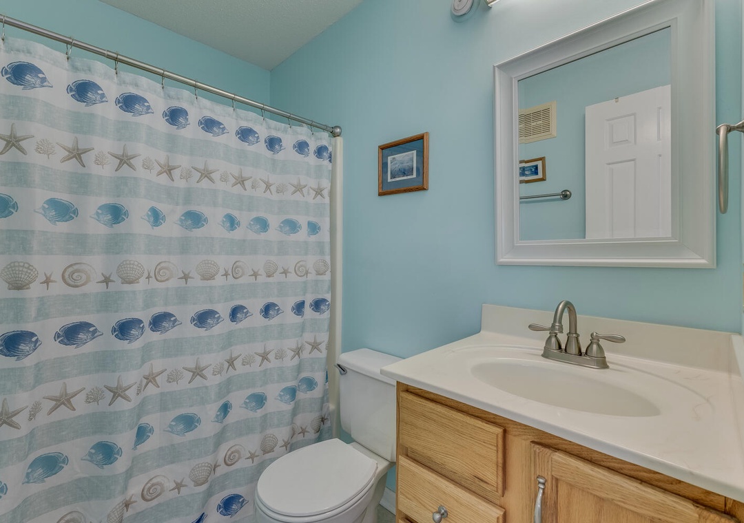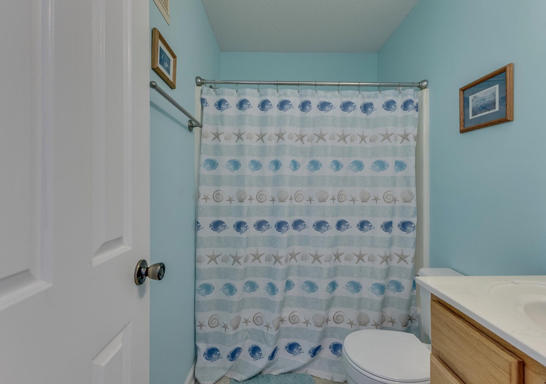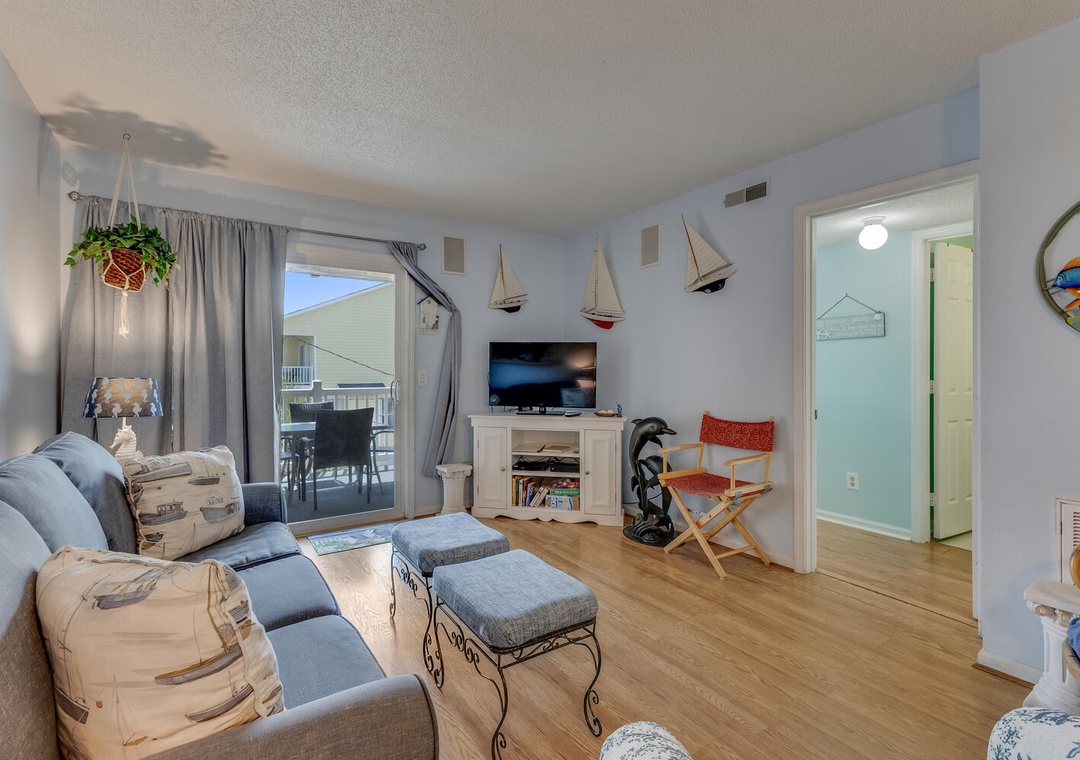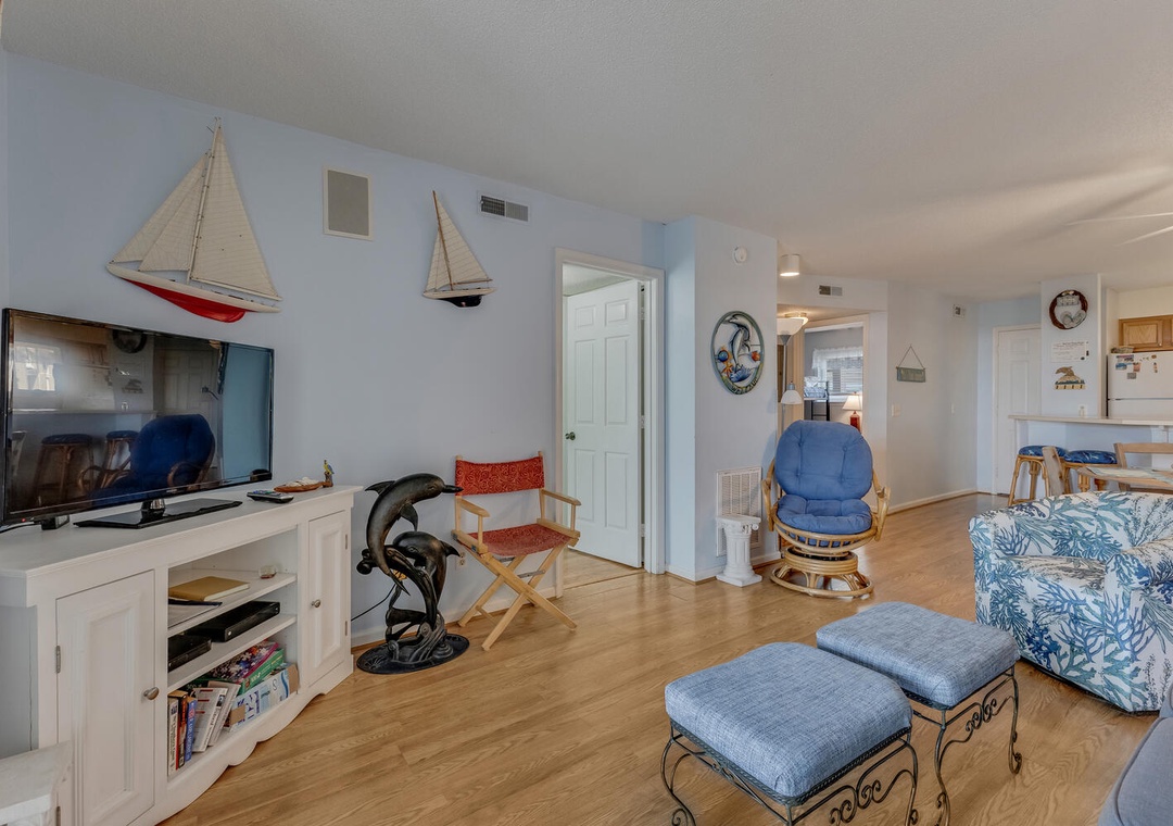The condo comfortably sleeps up to eight guests across two bedrooms. The master bedroom features a queen bed, ocean views, a private ensuite bathroom, and a desk for those needing to check in with work. The second bedroom includes a queen bed, a twin-over-twin bunk, and a flat-screen TV, making it ideal for kids or additional guests. With parking for two vehicles (parking passes required) and access to Carolina Beach's vibrant attractions, this delightful condo is ready to make your beach memories unforgettable!