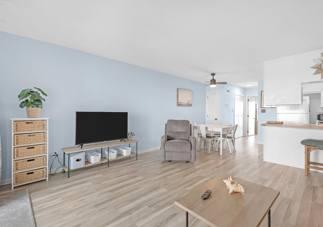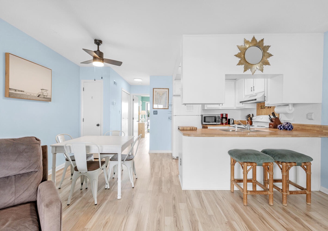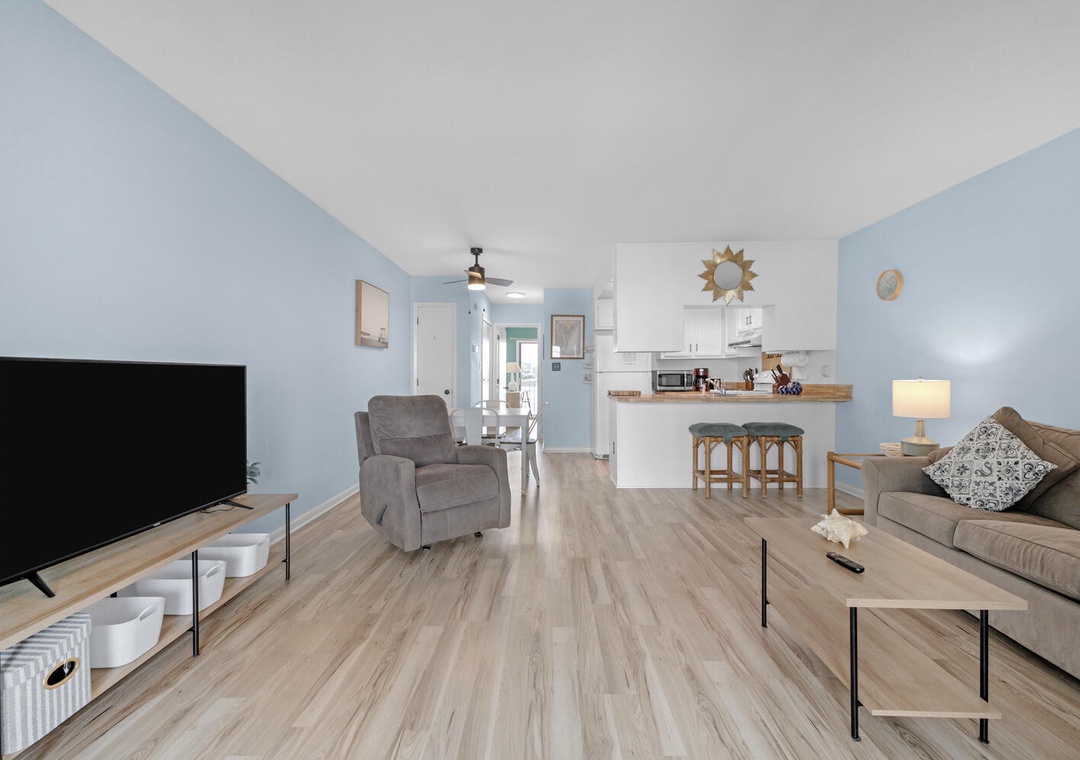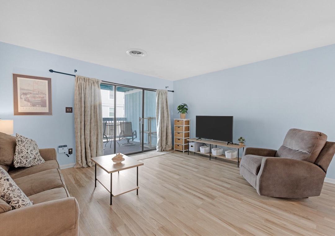 Inside, the condo offers a bright, open-concept living space, a fully equipped kitchen, and a private deck where you can unwind and enjoy the ocean breeze. It’s a comfortable, laid-back space designed for easy coastal living. Another private deck located off the primary bedroom offering peaceful views of the Carolina Beach Lake.