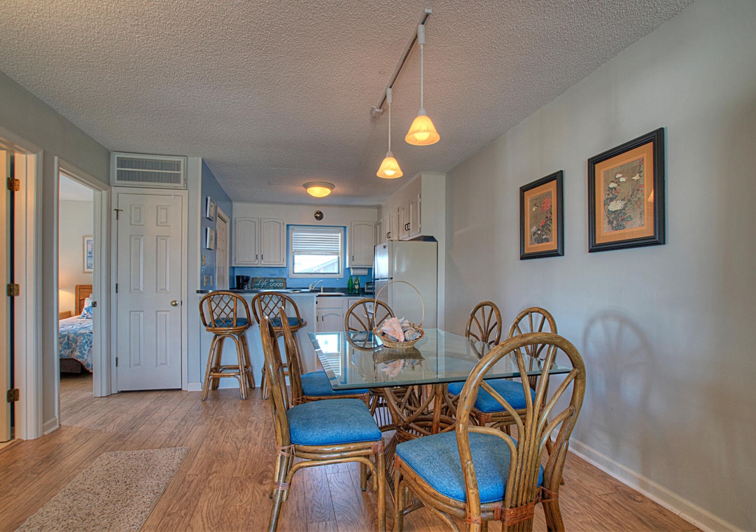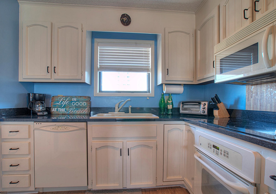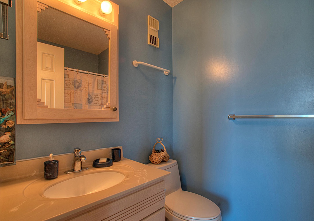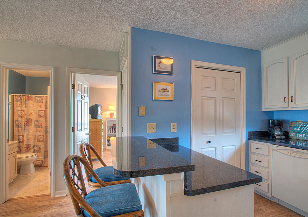 Designed for relaxation and convenience, the condo includes free WiFi, cable, and flat-screen TVs in the living room and master bedroom, along with streaming access on the living room TV. The fully equipped kitchen features a dishwasher, blender, microwave, and coffee maker, while additional amenities such as a washer/dryer, books, games, and a spacious deck enhance the stay. Beach and pool access are just steps from the parking area, and a common outdoor grill area is available for barbecues. A ground-floor storage closet is stocked with beach essentials, including chairs, a surfboard, and sand toys—just bring your flip-flops and swimsuits, and you're all set for a perfect beach getaway!