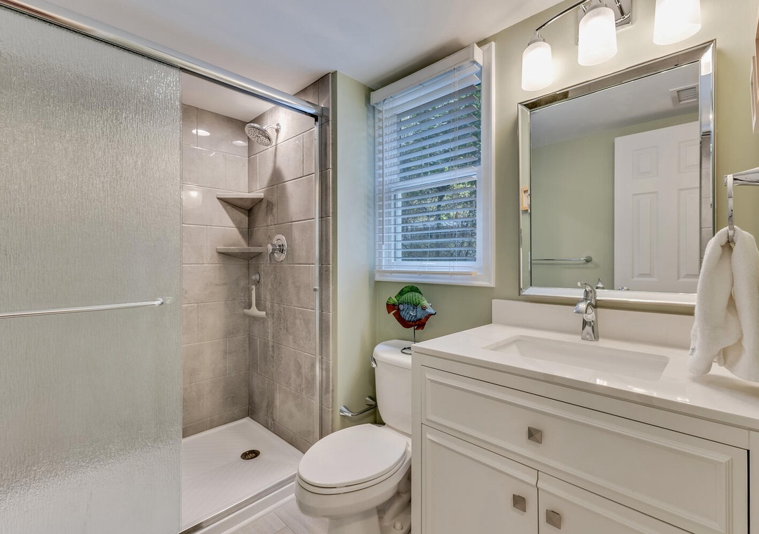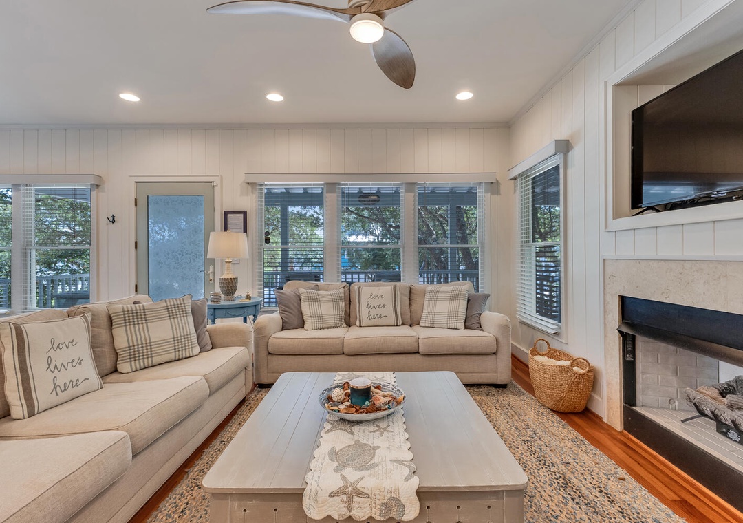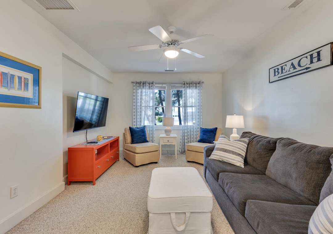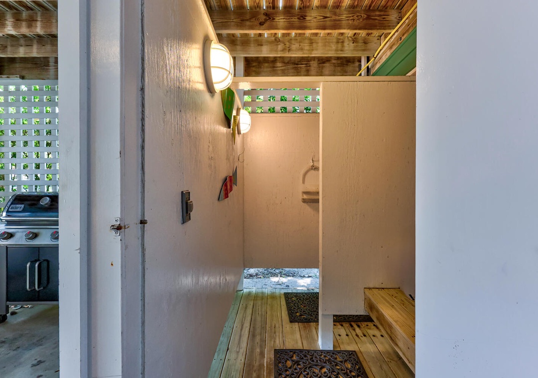 Enjoy outdoor living on the oversized porch with rocking chairs or spend the evening using the onsite gas grill or rinse off in the enclosed outdoor shower after a day at the beach. The driveway does have an outlet suitable for golfcart charging. Community amenities include a large seasonal pool, outdoor showers, tennis courts, a playground, walking trails, and a beachside gazebo with tiki bar, and restrooms.