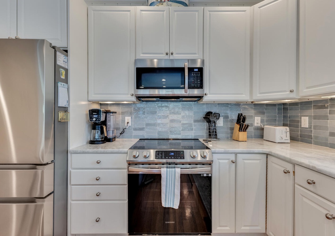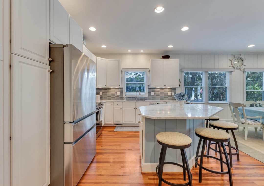 Located 5-minute walk from a private community beach access. The SeaWatch Community is an upscale, quiet seaside community perfect for kids to explore the neighborhood and ride their bikes. This home features an open concept living space, updated fully equipped kitchen featuring drip and pod coffee makers, king suites on each level, TVs in every bedroom, and fresh linens.