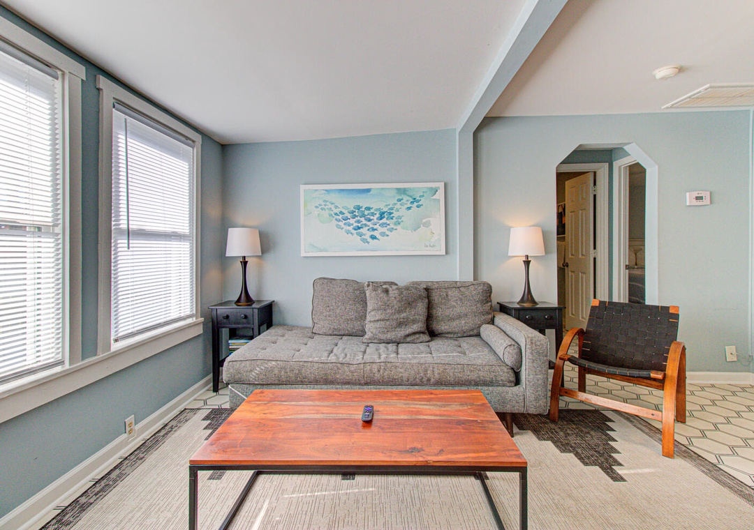 After a day of surfing, boogie boarding, or lounging on the shore, return to your private shaded deck, where Adirondack chairs, rockers, and ceiling fans provide the perfect setting to relax and watch the world go by. Inside, vibrant decor and central air conditioning create a bright and comfortable space. The well-equipped kitchen has all the essentials for home-cooked meals, while the dining area invites you to enjoy a drink and a friendly game of cards. Unwind in the living room with a cable TV, or connect to the complimentary Wi-Fi to share your beachside memories.