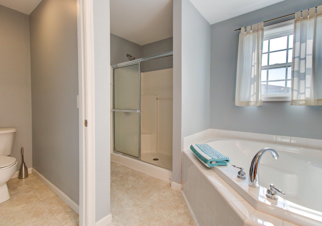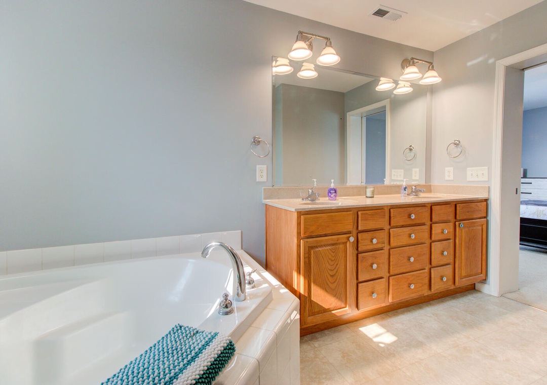 Master Bedroom (2nd Floor): Queen Bed, Private Bathroom with Walk-In Shower & Double Vanity