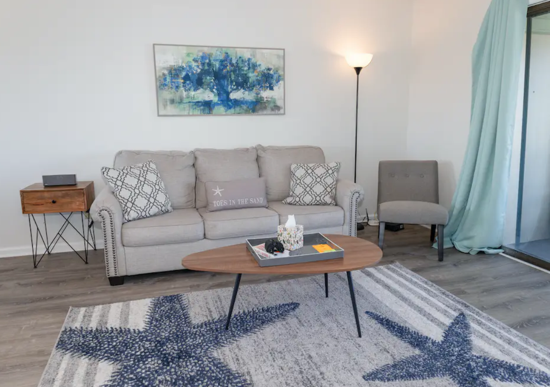 Inside, you'll find a fully equipped kitchen featuring a coil cooktop, microwave, and dining space for six, perfect for preparing and enjoying meals together. The cozy living room offers direct access to the ocean-view deck, making it a peaceful spot to unwind after a day in the sun. Sea Gem Serenity comfortably accommodates up to six guests, with a queen bed in the first bedroom and a full-over-full bunk in the second. Designed for comfort and convenience, this condo is a true gem for anyone looking to soak up the serenity of coastal living.