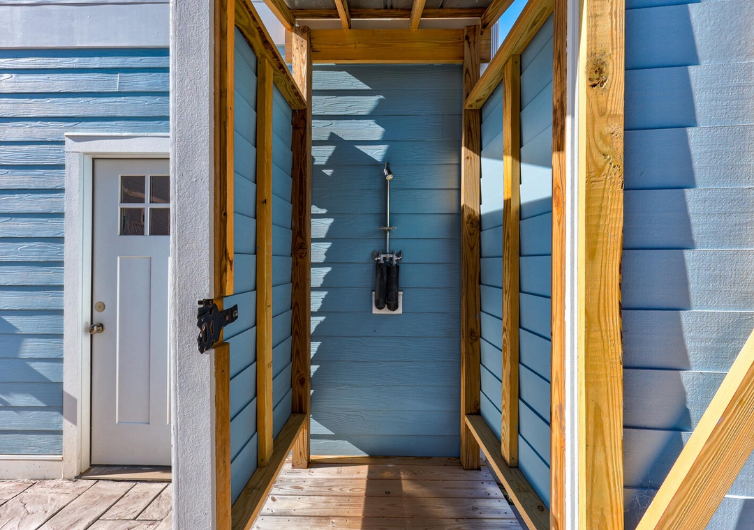 Fenced Yard. Outdoor Shower. Ground Level entry door with interior stairwell to living level.