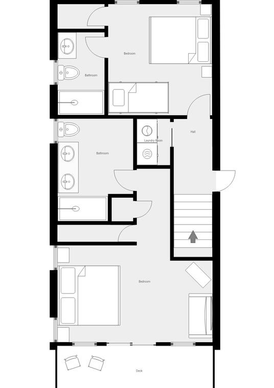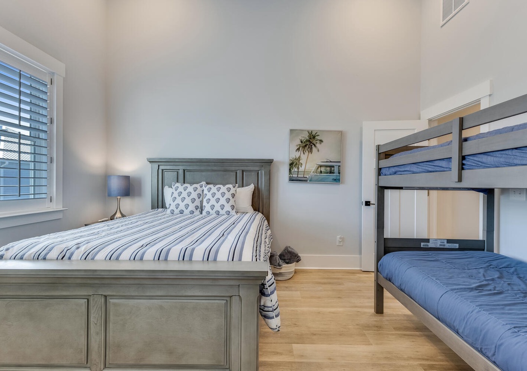 Guest Suite: Queen Bed, Twin over Twin Bunks. Ensuite Bath. Ceiling Fan, Smart TV.