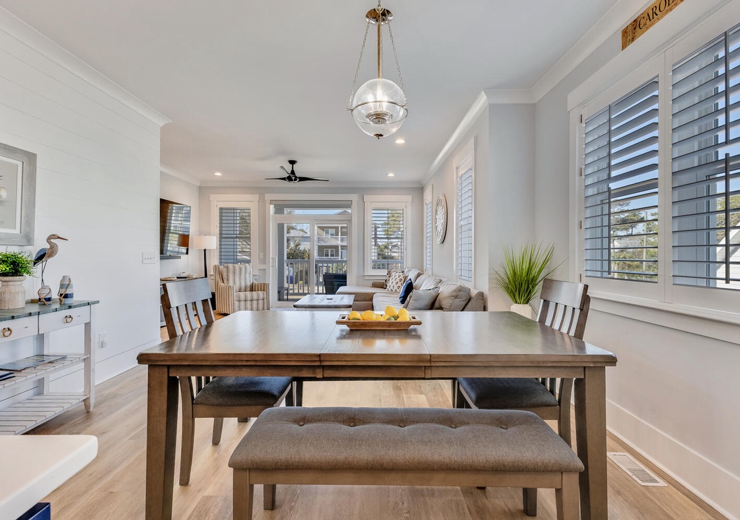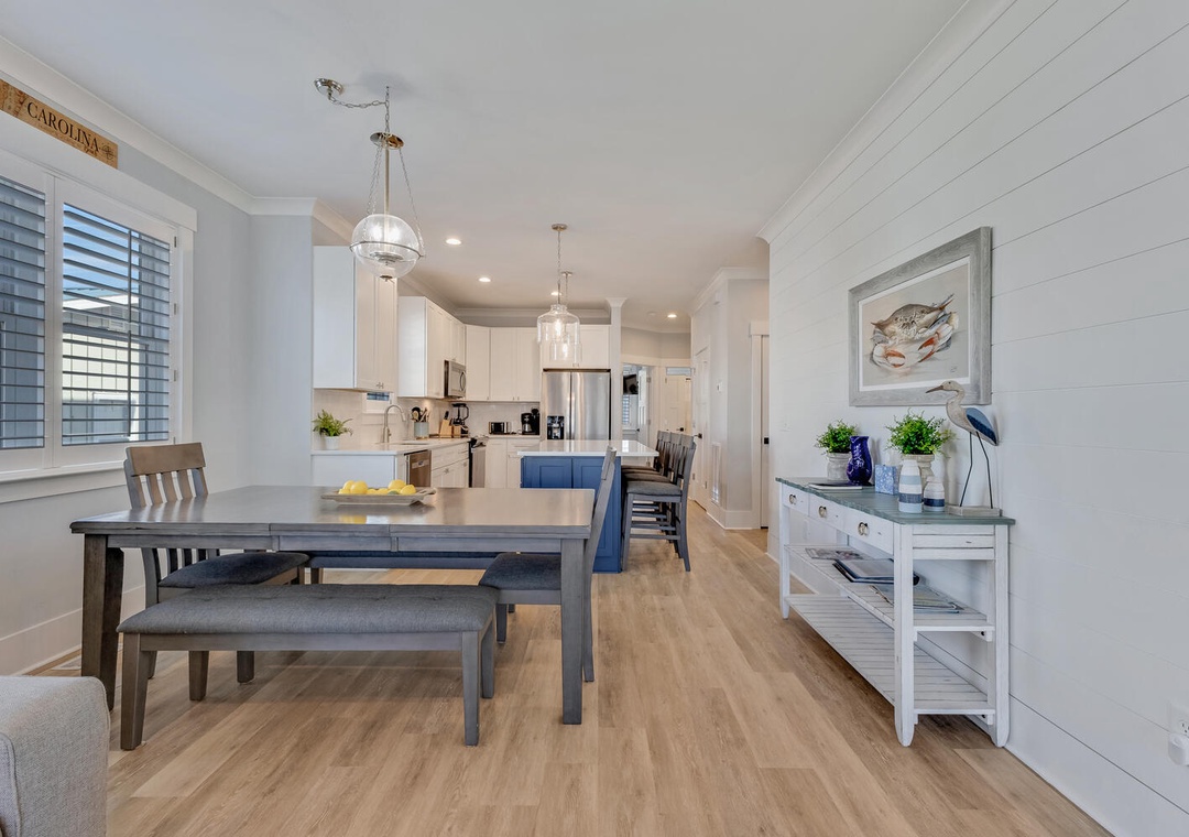 Dining Area: Dining Tables and Chairs for Eight. Counter Seating for 4.