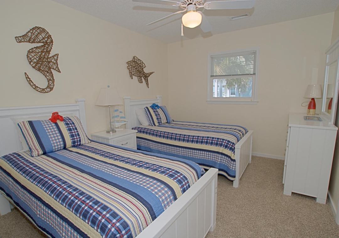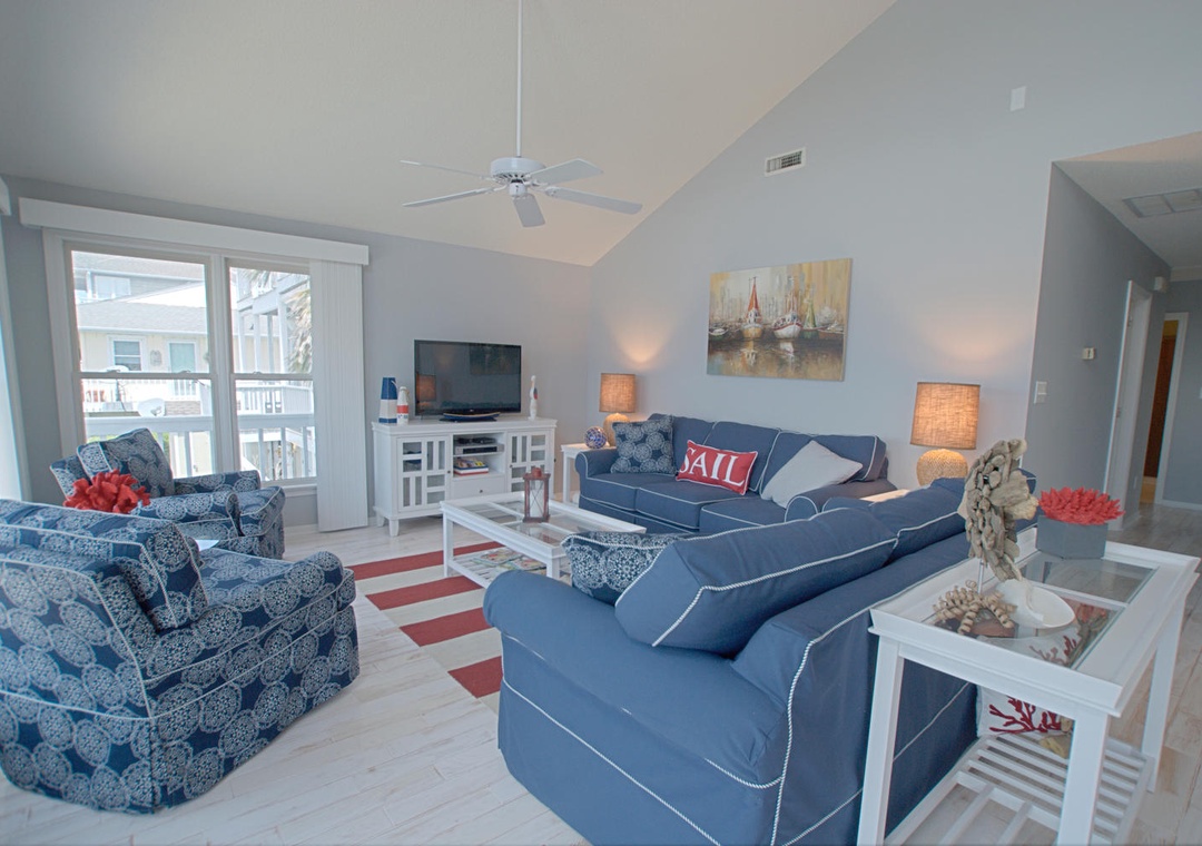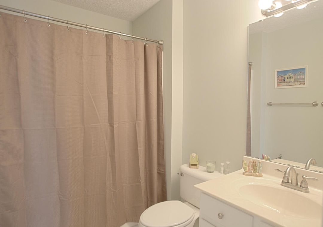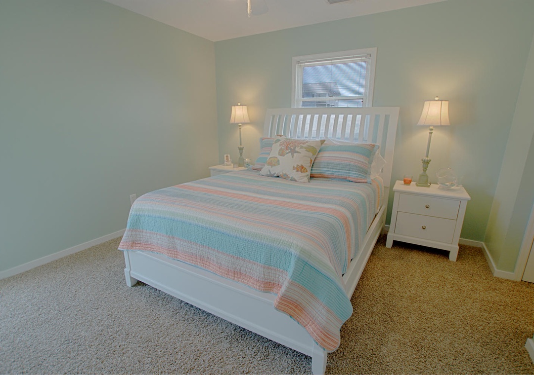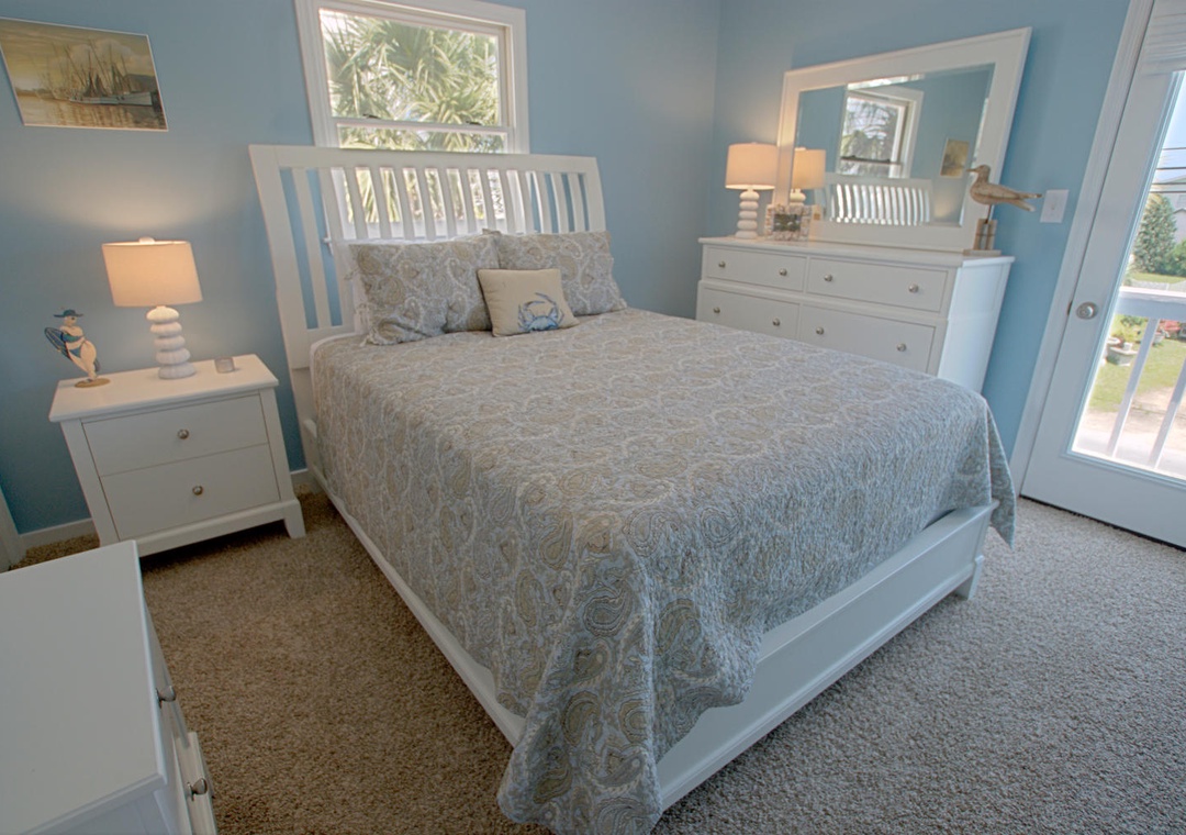 Each bedroom is designed with relaxation in mind. The master suite features a queen bed, cable TV, and access to a private deck on the street side, along with an ensuite bathroom with a shower/tub combination. The second bedroom also has a queen bed, ceiling fan, and shares a street-side deck with the third bedroom, which is furnished with a twin and full bed. Whether you’re here to relax or explore, Ship Faced offers a comfortable, scenic stay with all the amenities to make it feel like home.