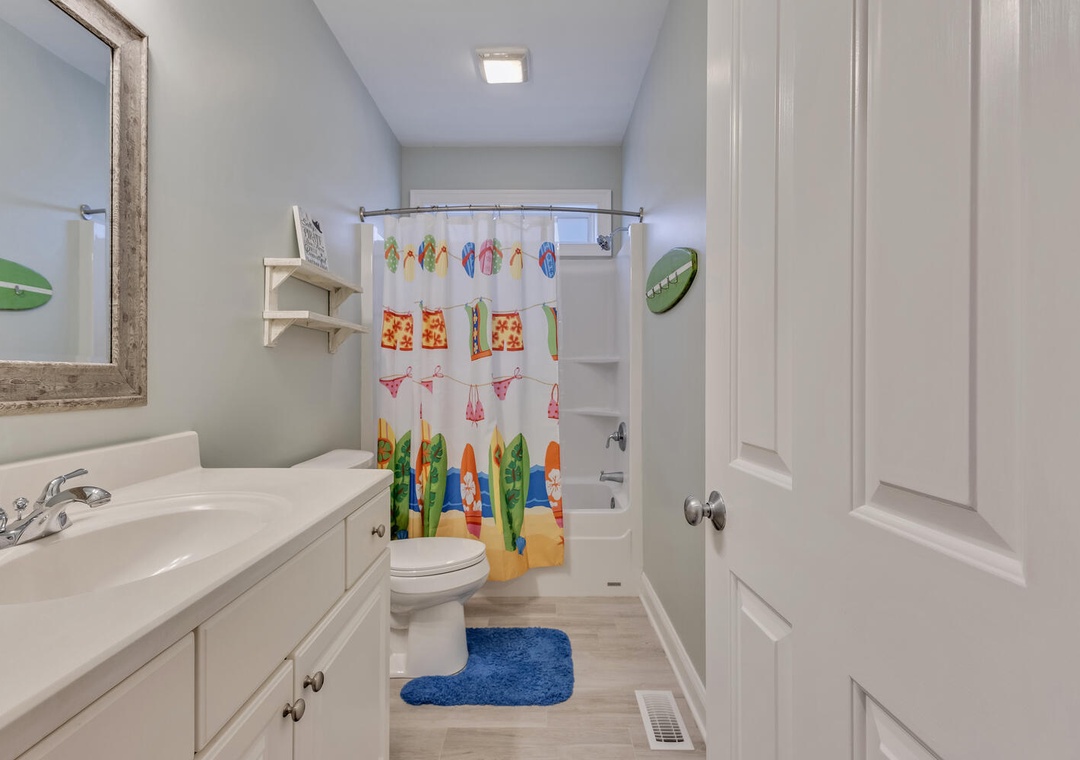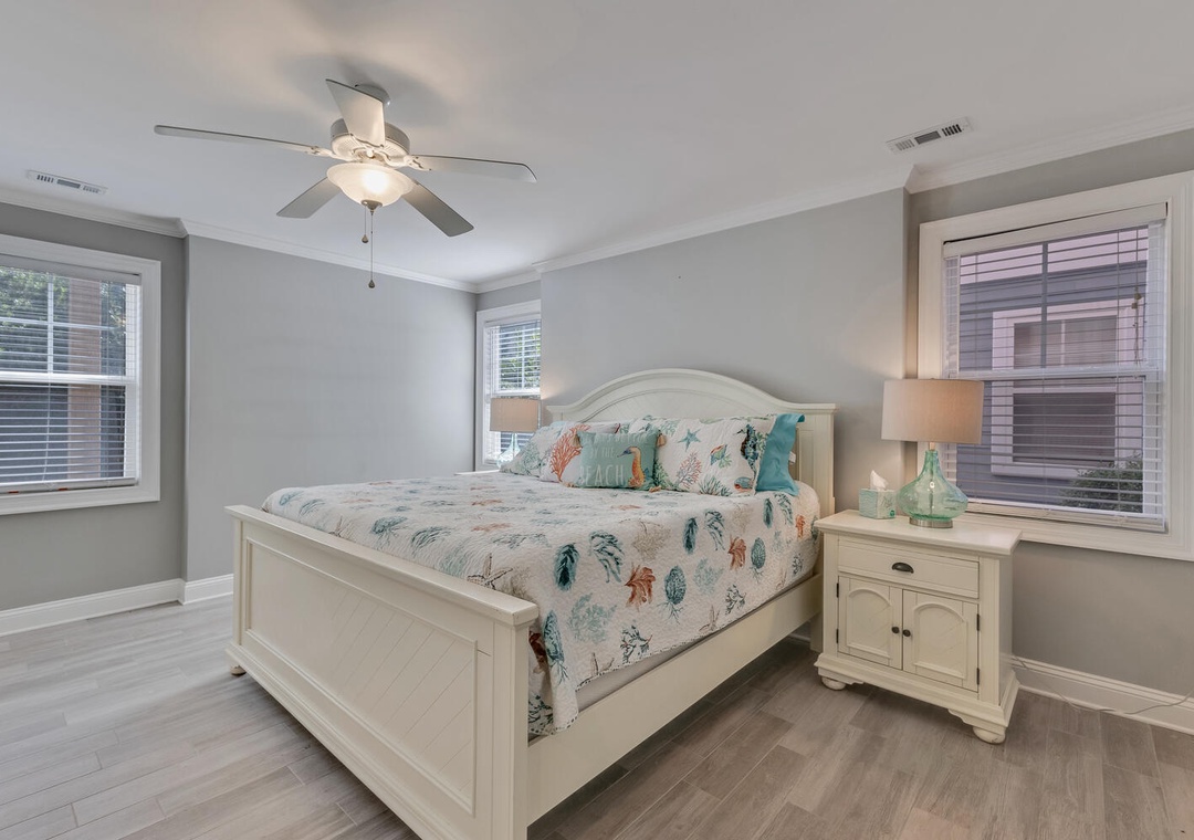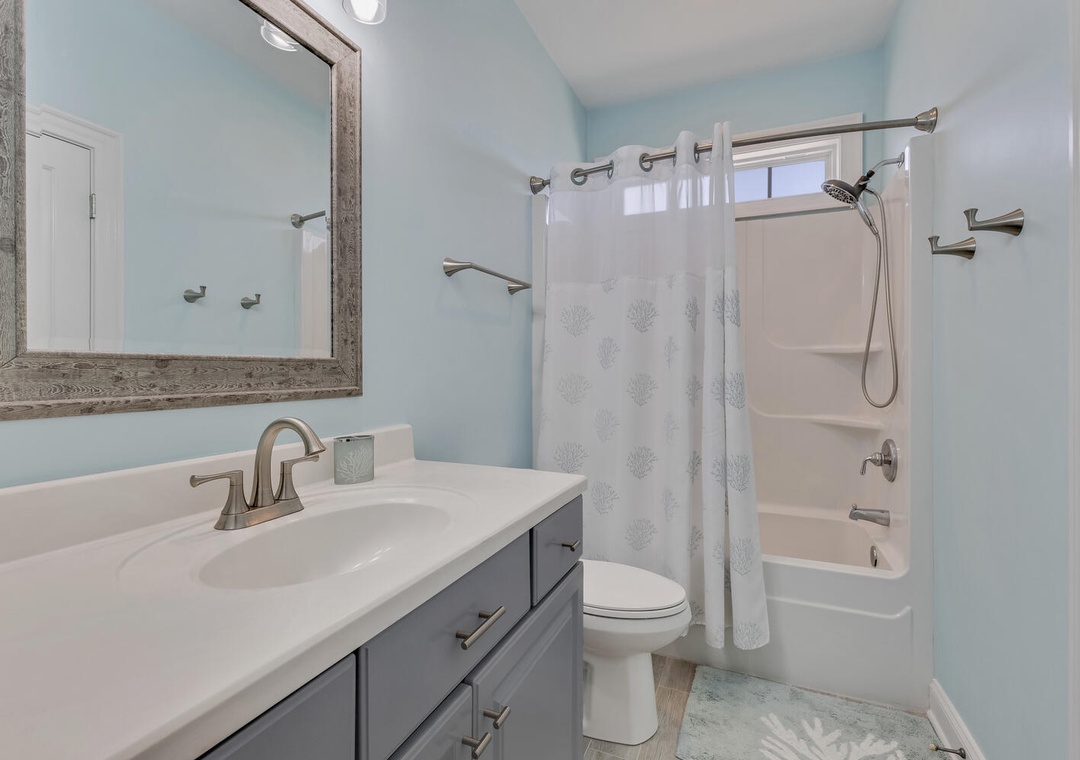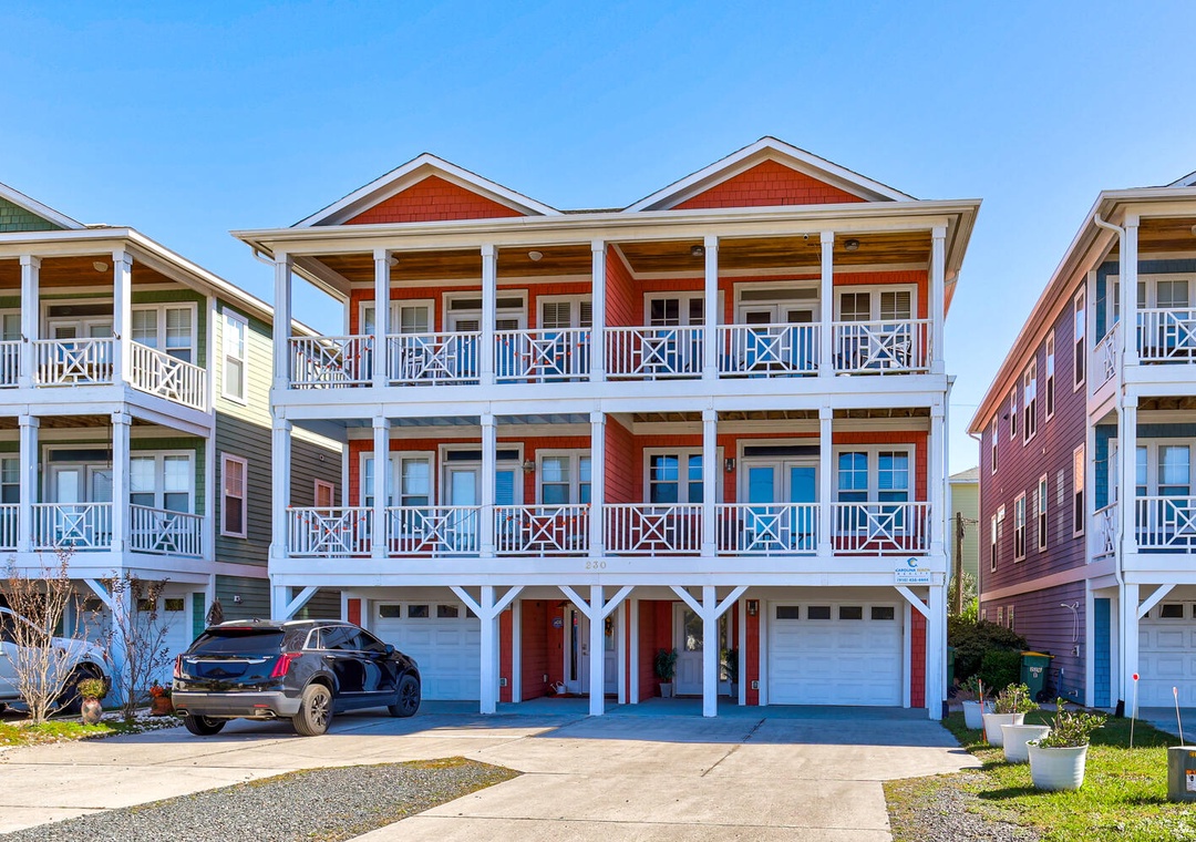 This home provided one side of a modern duplex, giving you a private, peaceful space while still being close to the heart of Kure Beach. Step inside to discover a bright and airy interior with an open concept living areas, and all the modern amenities to make you feel right at home. With two spacious primary bedrooms, each featuring its own ensuite bathroom, guests can enjoy both privacy and luxury. These suites are perfect, offering comfort and convenience for everyone.