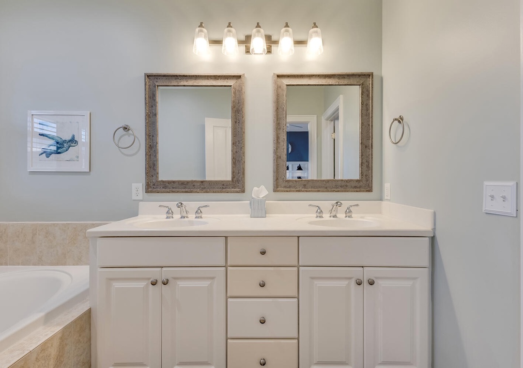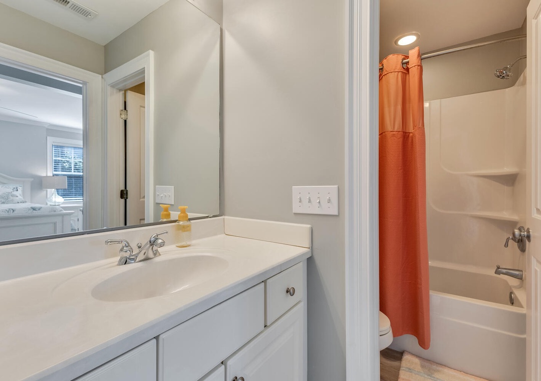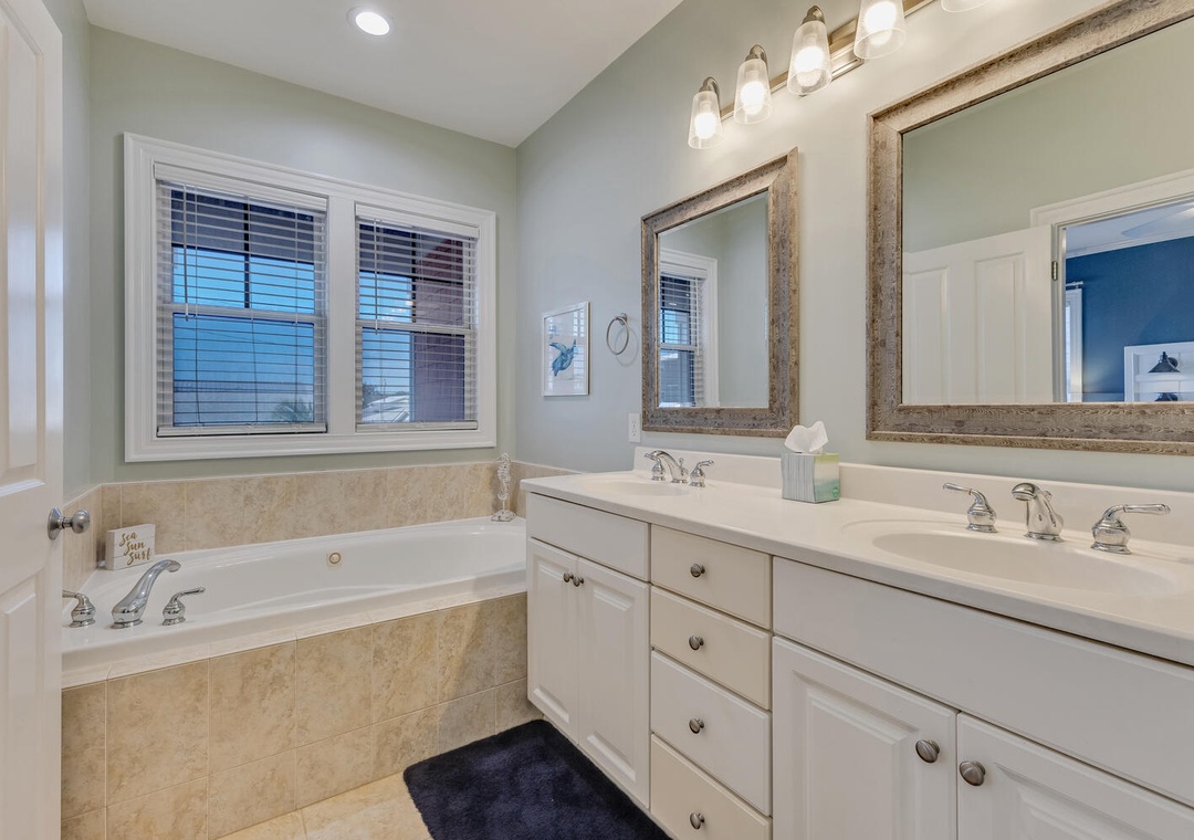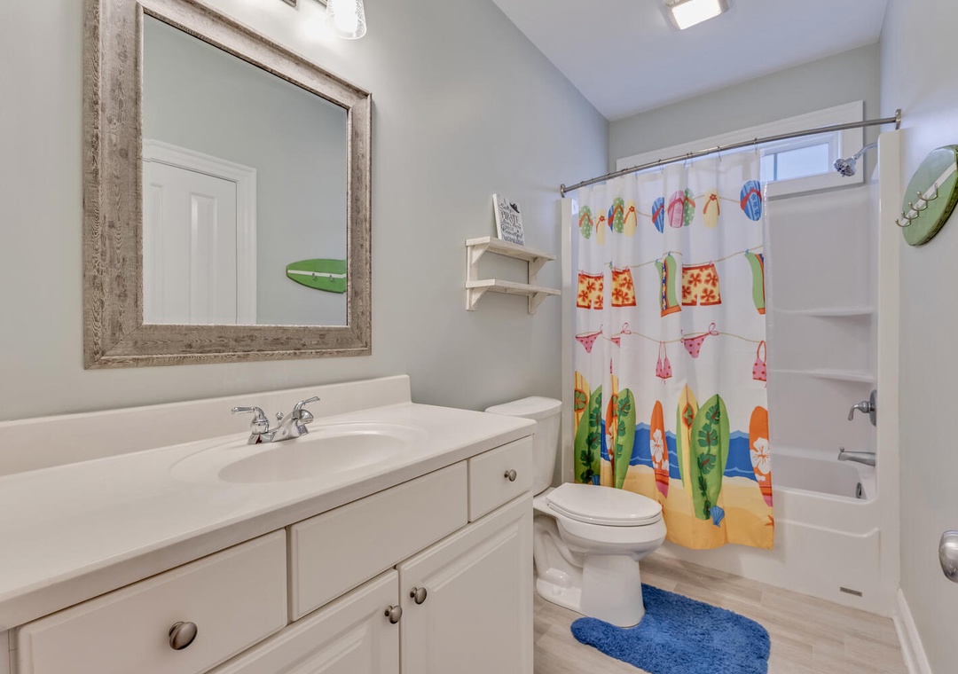 This home provided one side of a modern duplex, giving you a private, peaceful space while still being close to the heart of Kure Beach. Step inside to discover a bright and airy interior with an open concept living areas, and all the modern amenities to make you feel right at home. With two spacious primary bedrooms, each featuring its own ensuite bathroom, guests can enjoy both privacy and luxury. These suites are perfect, offering comfort and convenience for everyone.