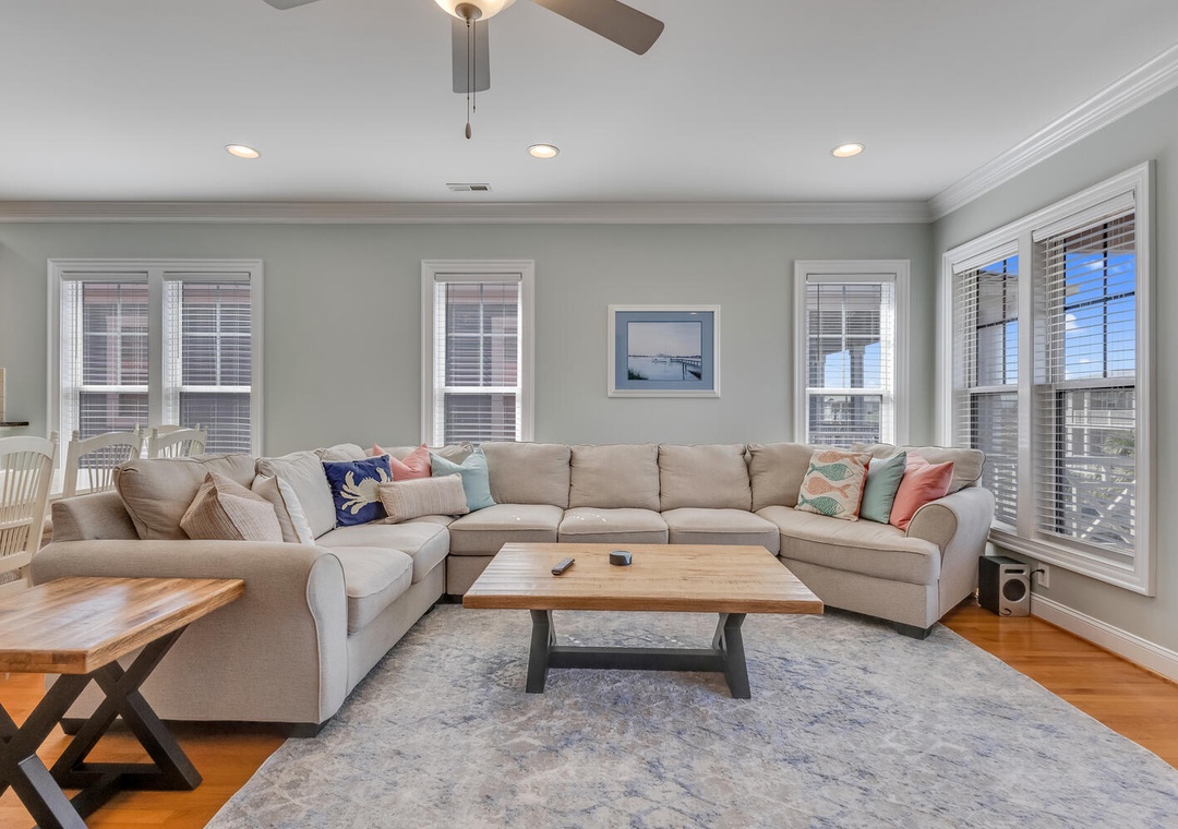 Outdoor living is where this home truly shines. Enjoy multiple decks complete with comfortable outdoor furniture, The home is equipped with everything you need for a stress-free beach vacation, including a fully stocked kitchen, Wi-Fi, smart TVs, a washer and dryer, and parking for multiple vehicles. The location offers the best of both worlds – a peaceful residential neighborhood just a short walk from the beach access points, and only a quick drive or bike ride to the Kure Beach Pier, shops, restaurants, and the Fort Fisher attractions.
