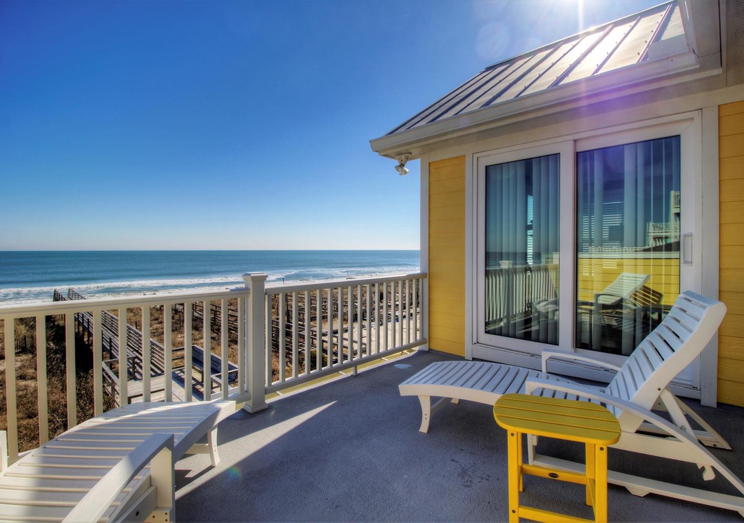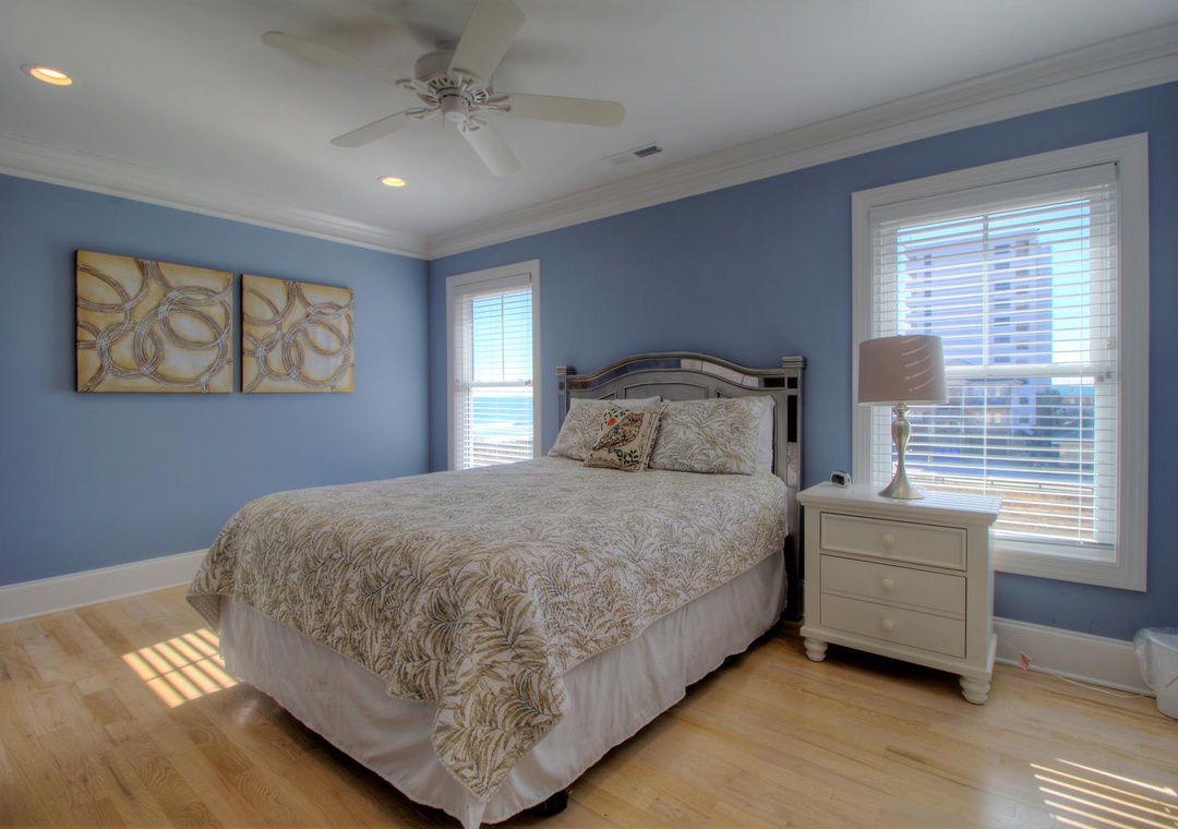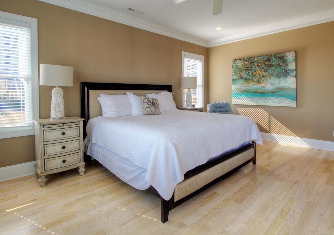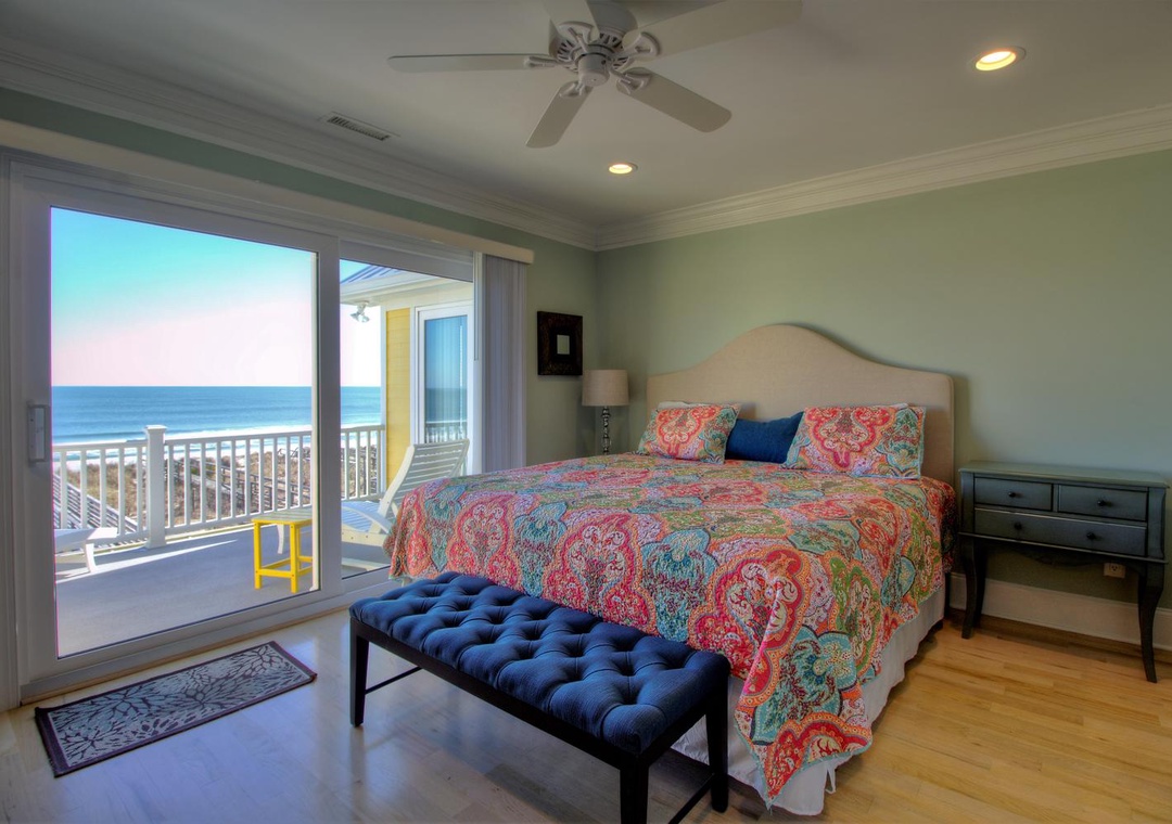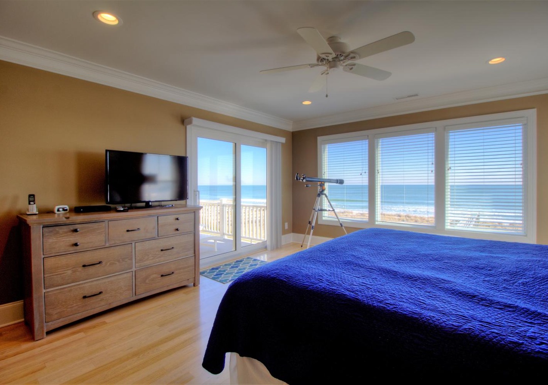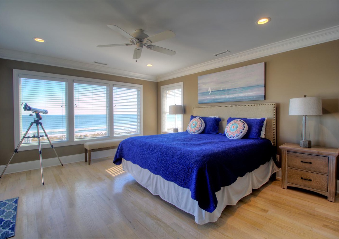 Master Suite, Oceanfront, 3rd Floor En Suite Bathroom with Walk-in Shower King Bed Smart Flat Screen 4k TV Shared Oceanfront Deck with Bedroom 3 Ceiling Fan Alarm Clock