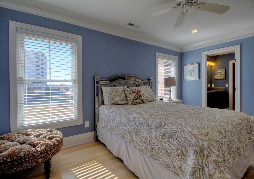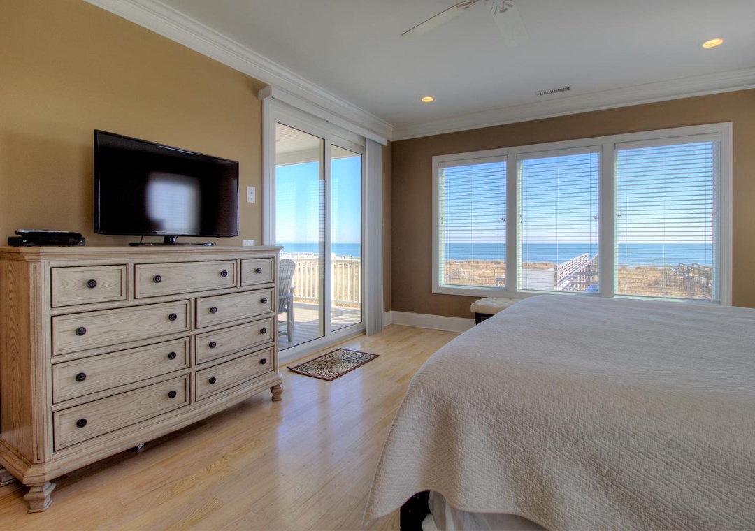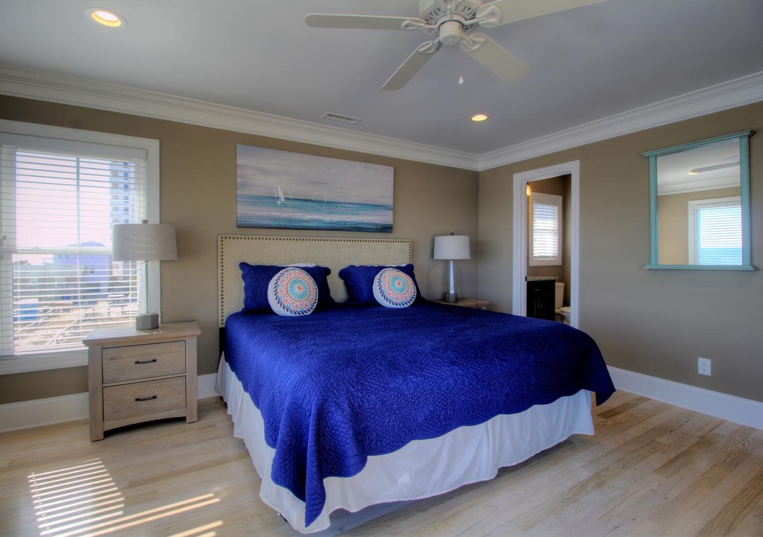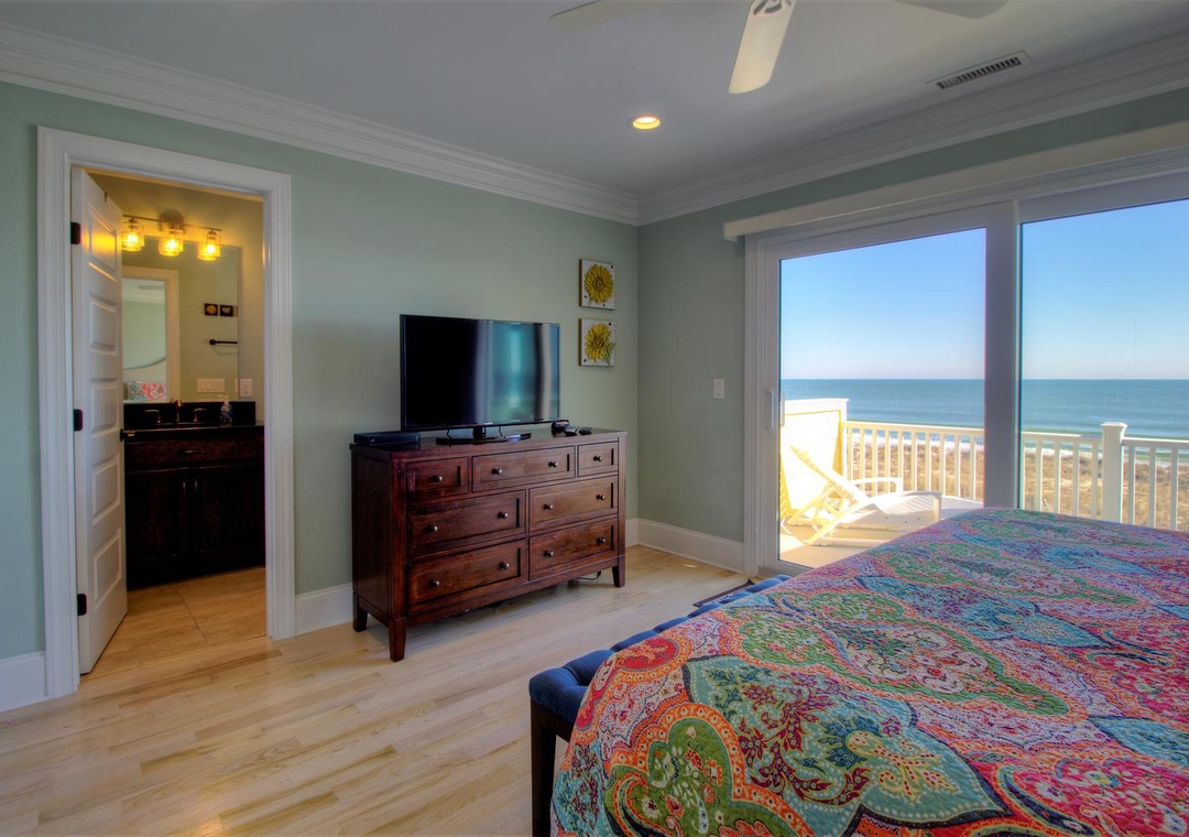 Master Suite, Oceanfront, 3rd Floor En Suite Bathroom with Walk-In Shower King Bed Smart Flat Screen 4K TV Shared Oceanfront Deck with Bedroom 4 Ceiling Fan Alarm Clock