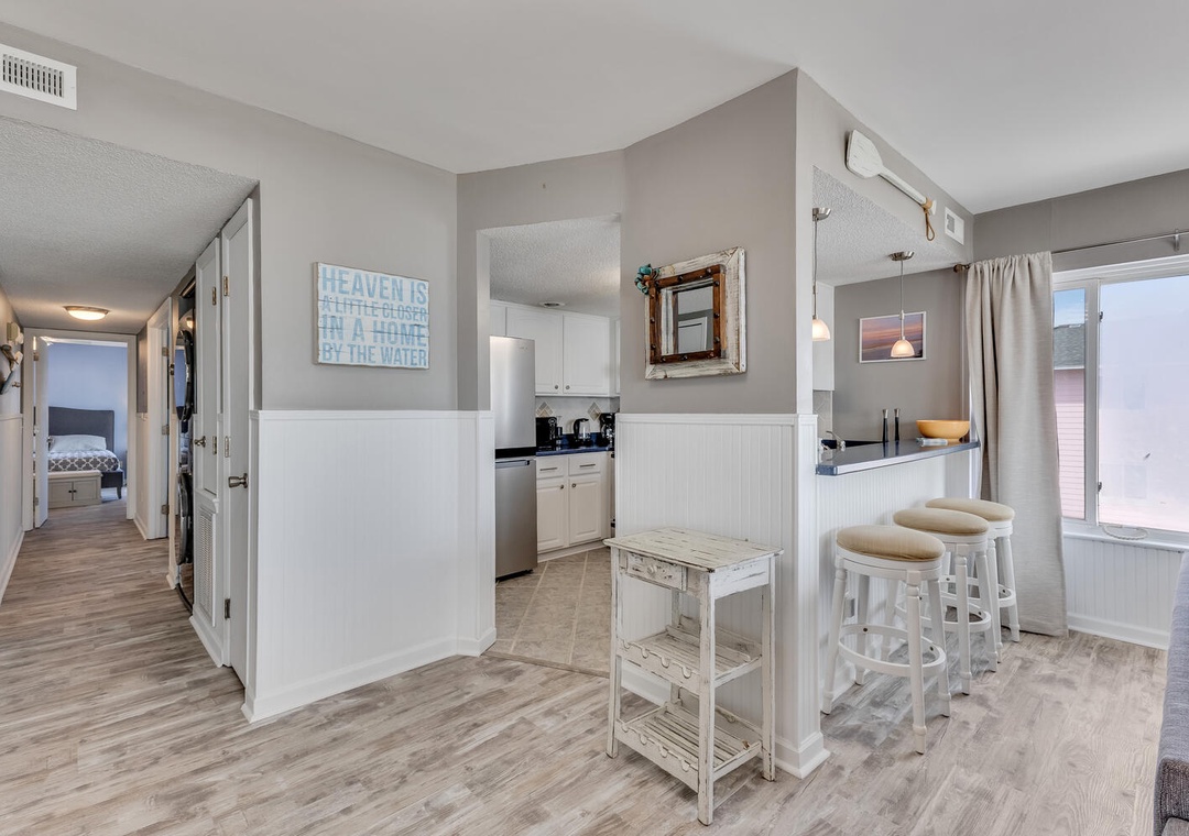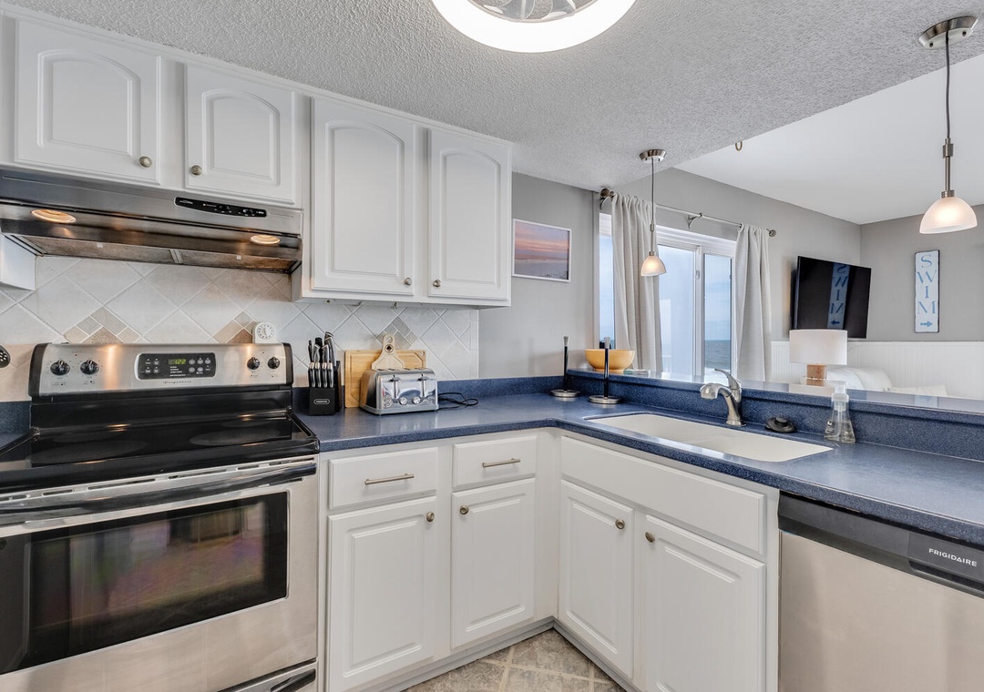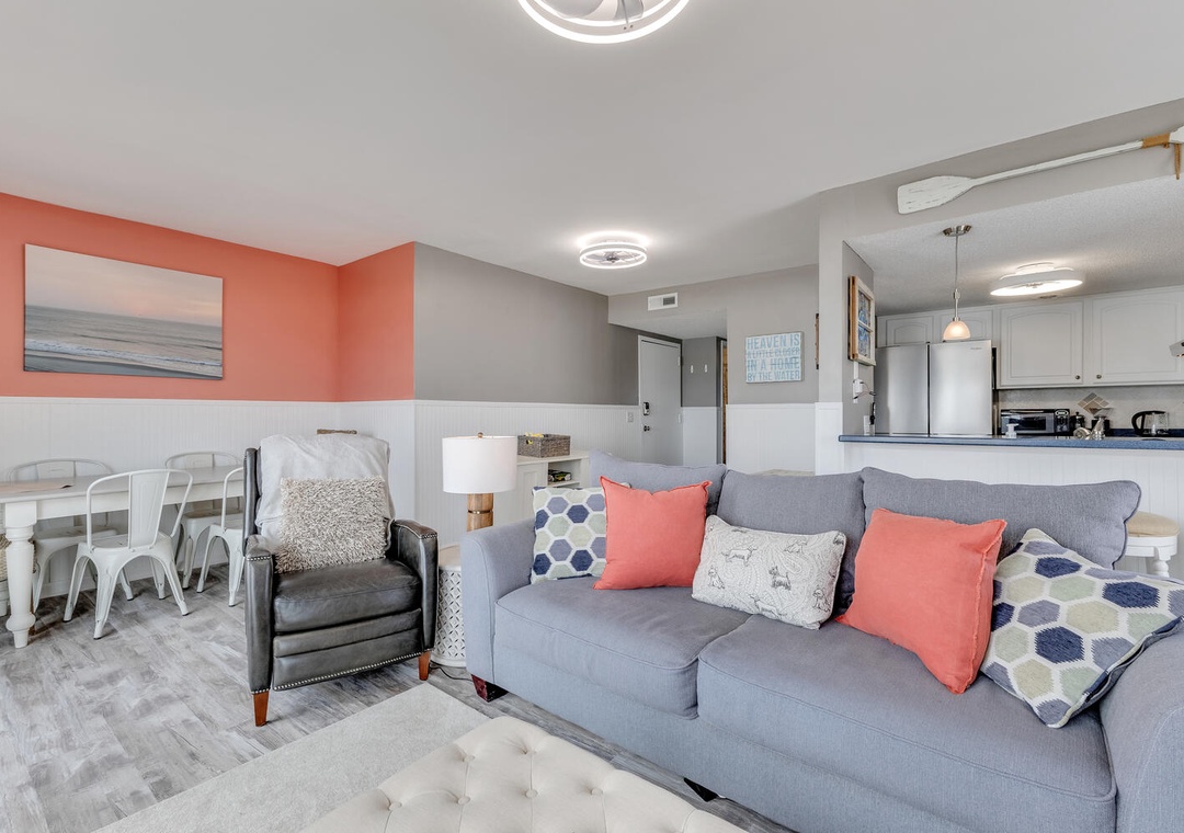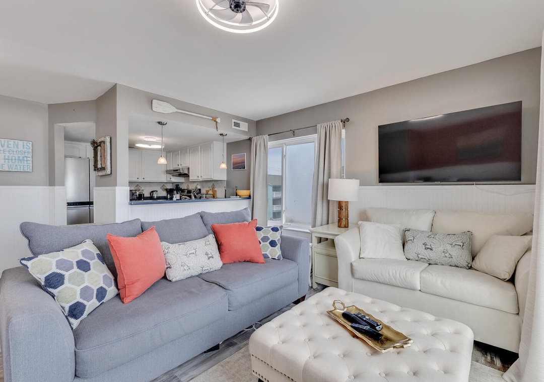 Step inside to a bright, inviting living space filled with natural light and comfortable coastal décor. Large sliding doors open directly to the oceanfront deck. The fully equipped kitchen provides everything you need for easy meals, snacks after the beach.
