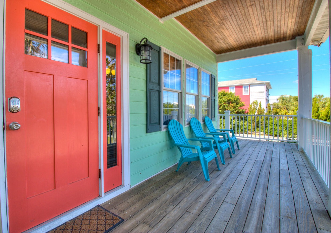 Surfuncle offers five comfortable bedrooms spread across three floors, making it an excellent choice for larger groups or families. The primary bedroom on the second floor features a king bed and ceiling fan, while another queen bedroom on the same level has a private full bathroom and a mini fridge, wet bar, two couches, and a Wii gaming system. Upstairs, two additional queen bedrooms share a full bathroom and include walk-in closets, flat-screen TVs, and ceiling fans. The bottom floor offers a separate common area with seating for five, a flat-screen TV, and a kitchenette with a refrigerator, microwave, dishwasher, and half bath—ideal for added privacy or an in-law suite setup. With plenty of space, modern amenities, and a prime location near the beach, Surfuncle is your perfect home away from home!