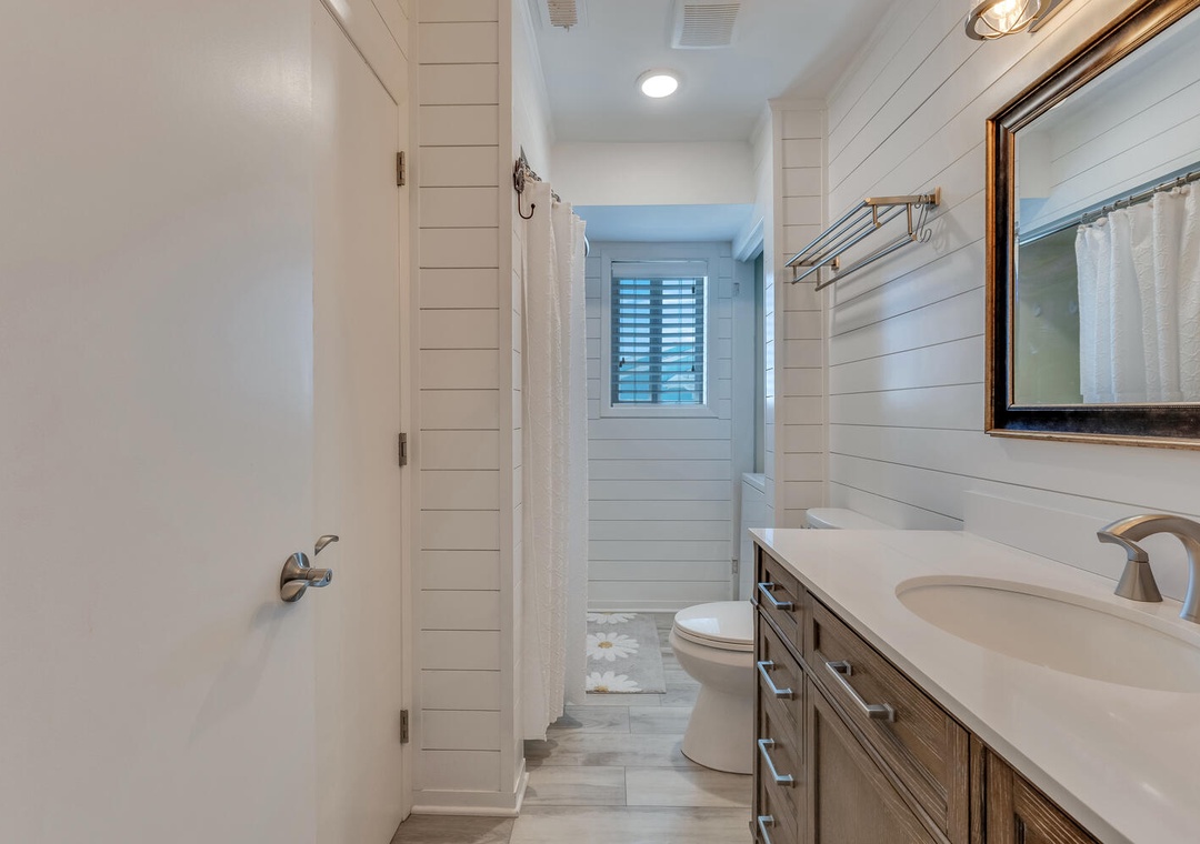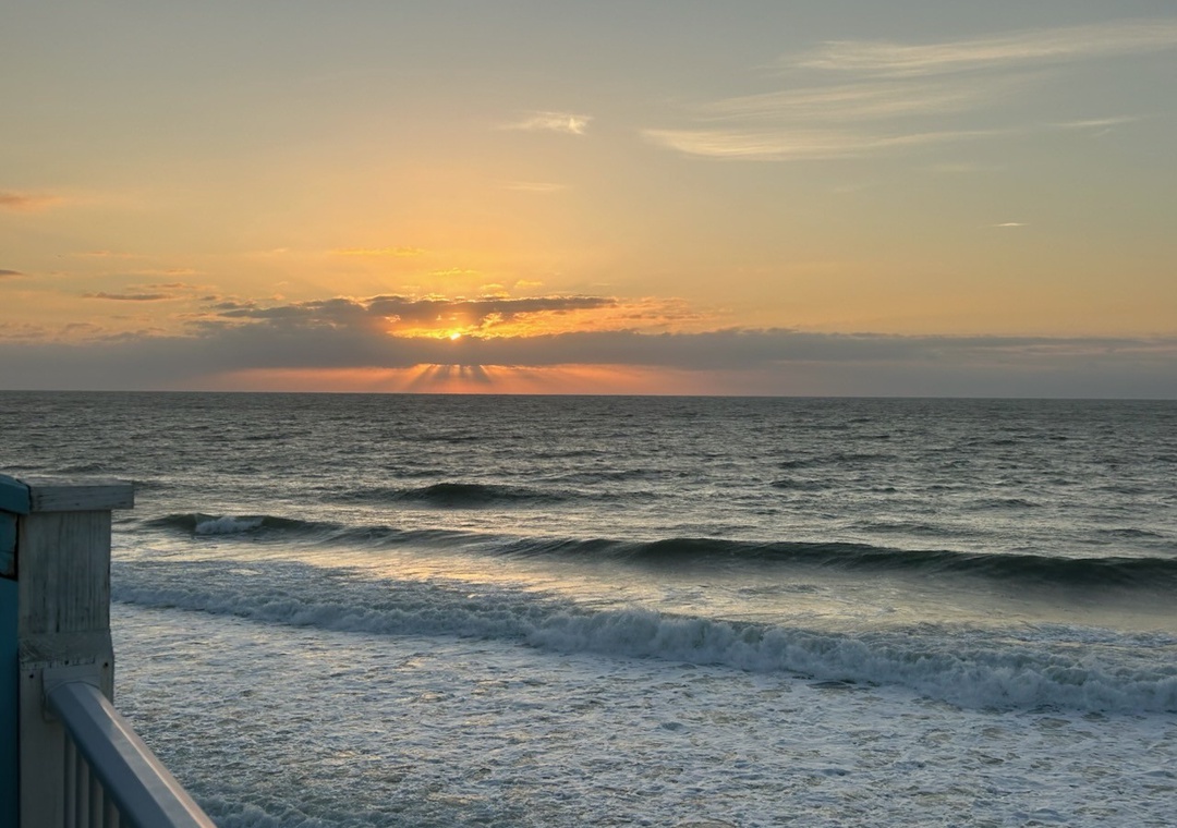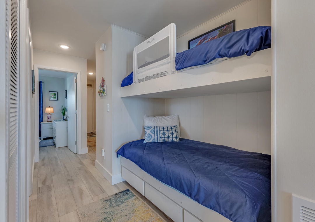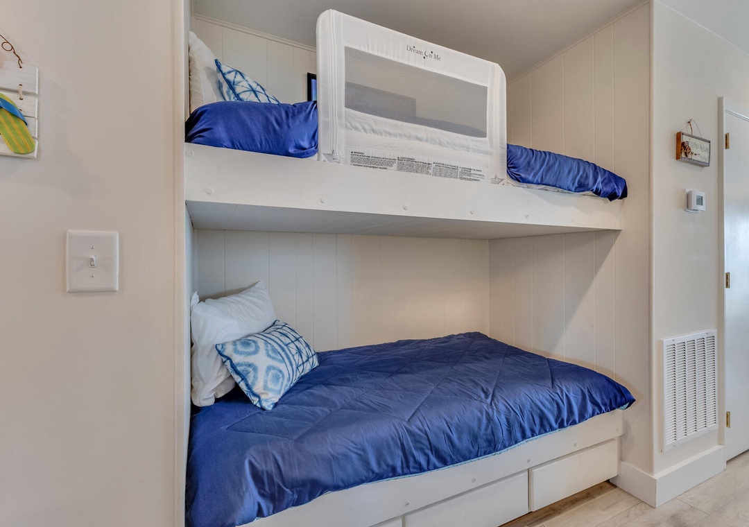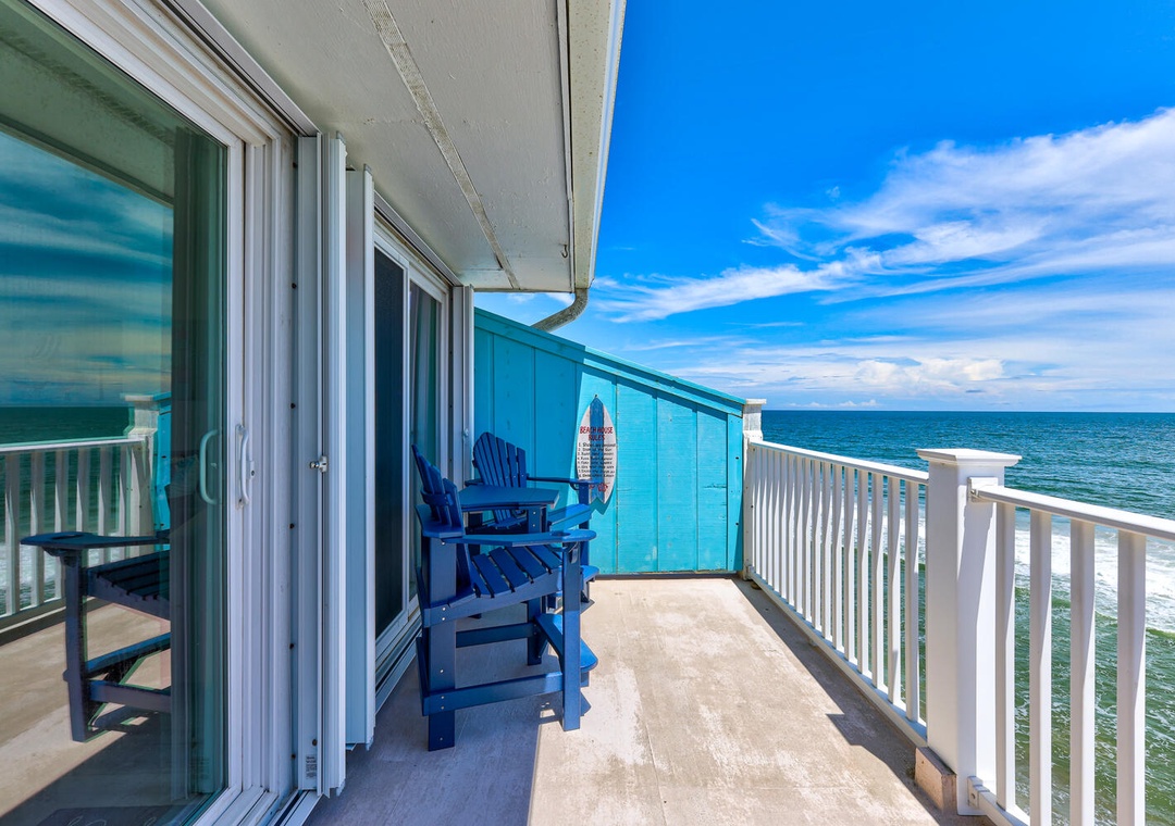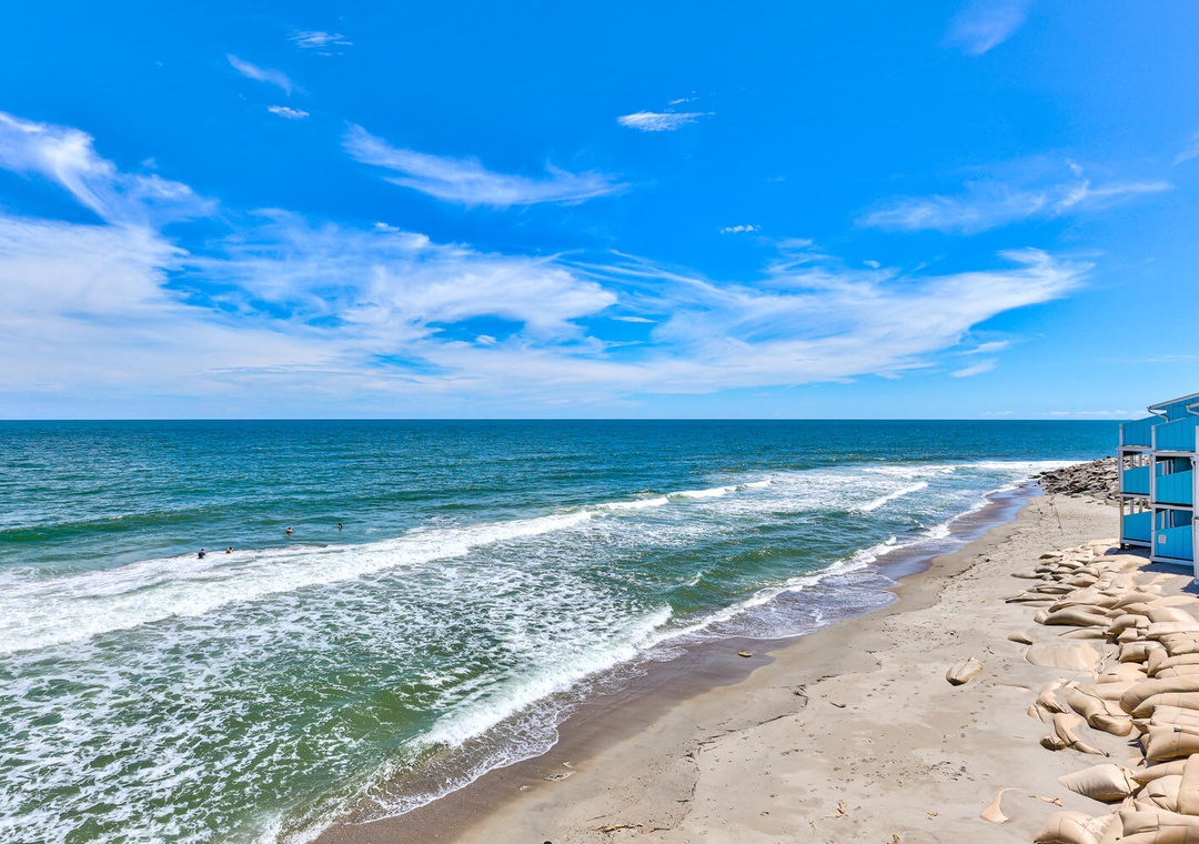 This top-floor, oceanfront condo offers a comfortable and functional layout with sweeping views of the Atlantic Ocean. Located in a well-maintained beachfront complex, the unit includes 1 private bedroom with a Queen bed and a built-in hallway nook featuring two twin-size bunk beds. A shared full bathroom is conveniently located near both sleeping areas.