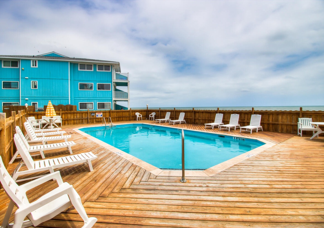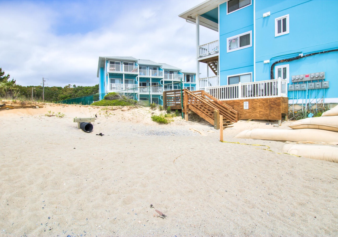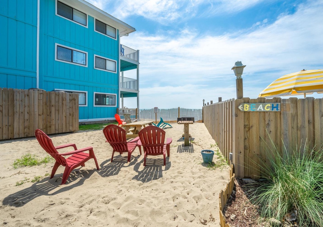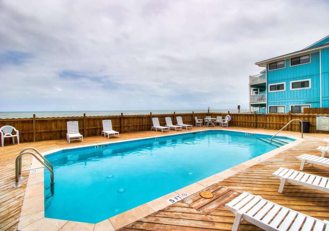 The condo is part of a beachfront complex that features several community amenities, including a large outdoor pool and onsite beach access point. The grounds are landscaped and well-kept, providing a peaceful, coastal atmosphere. Ideal for up to four guests, this unit offers practical comfort with a front-row seat to the ocean.