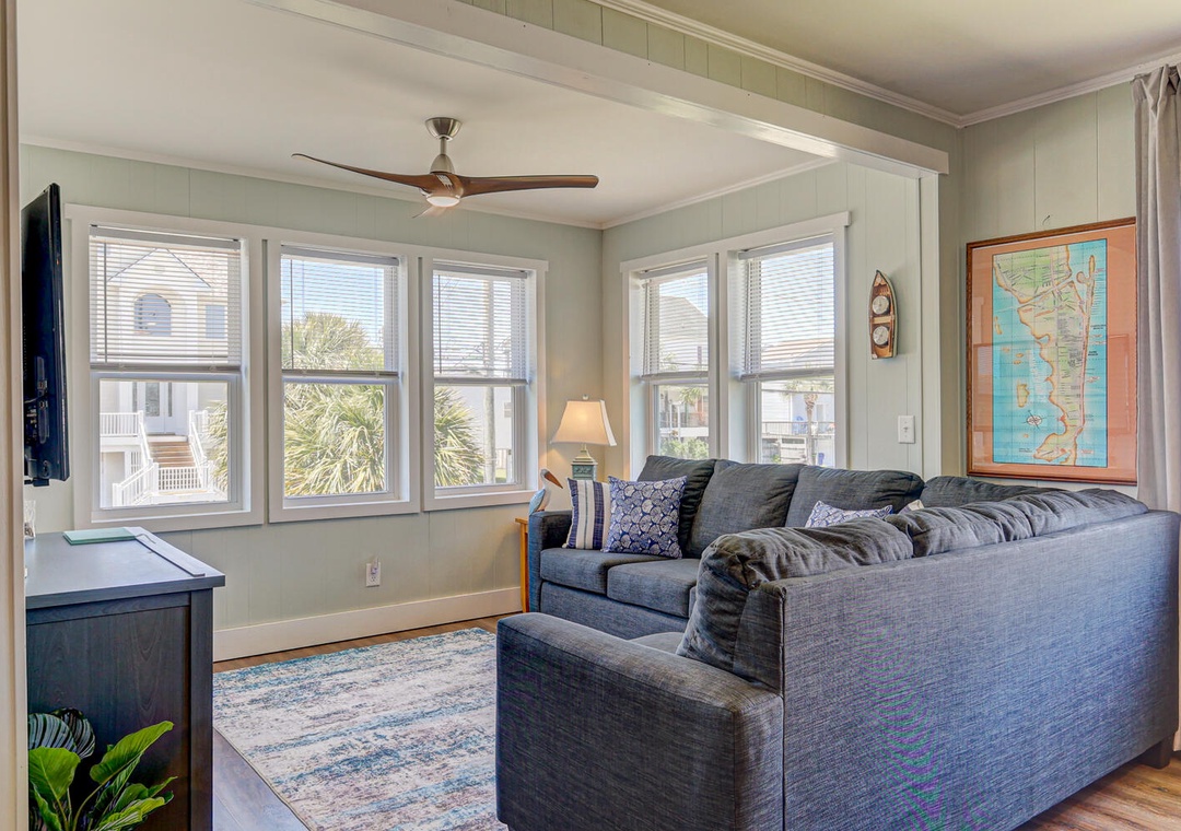 2nd Floor Queen Bed Smart TV Ceiling Fan
