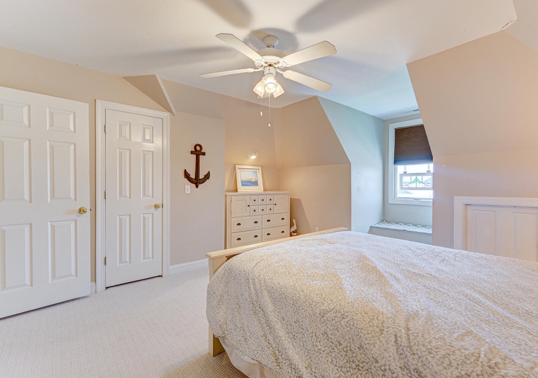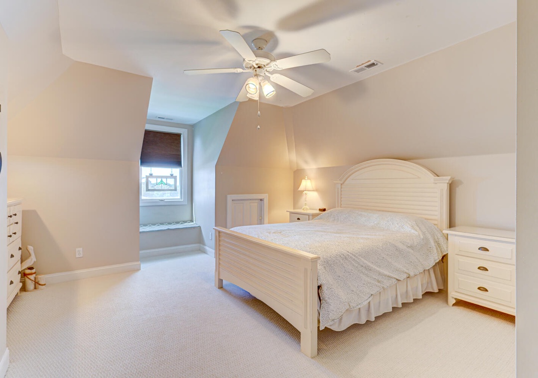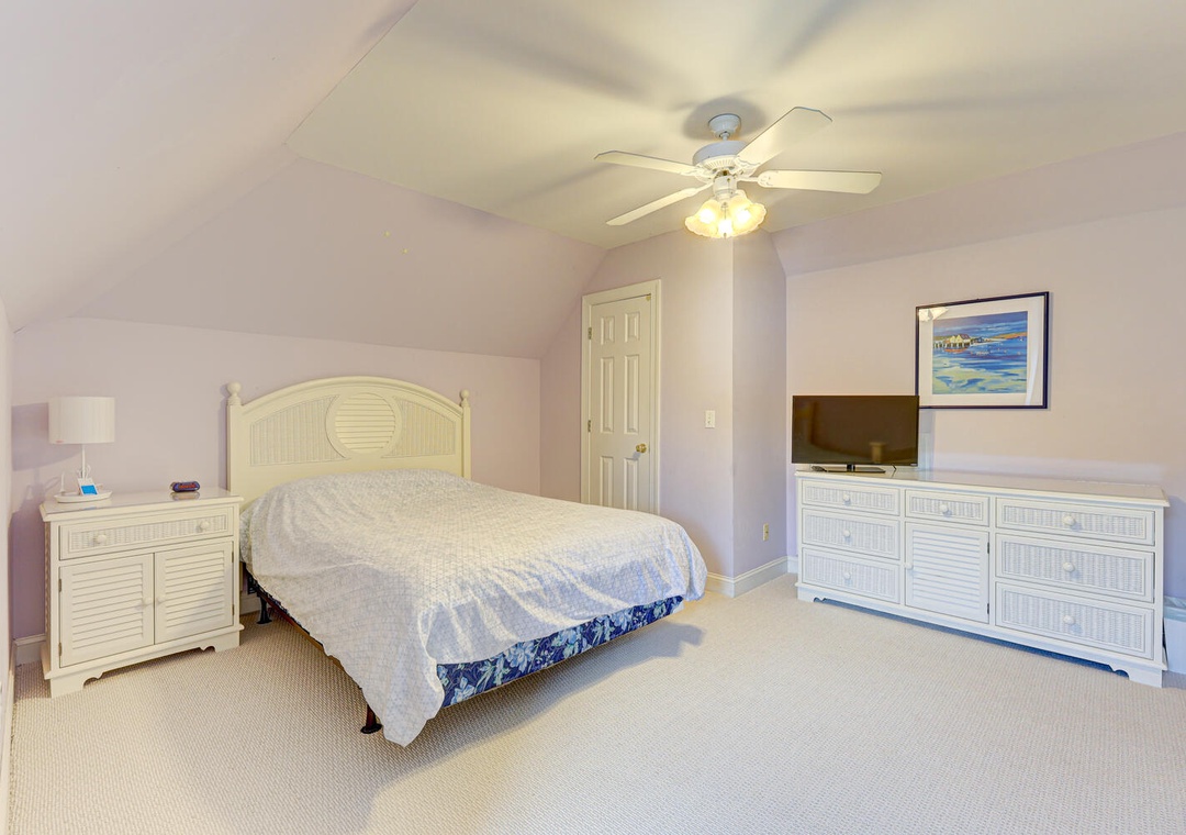 2nd Floor Queen Bed Smart TV with Cable Rocking Chair Ceiling Fan Attached Bathroom