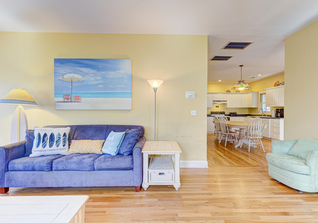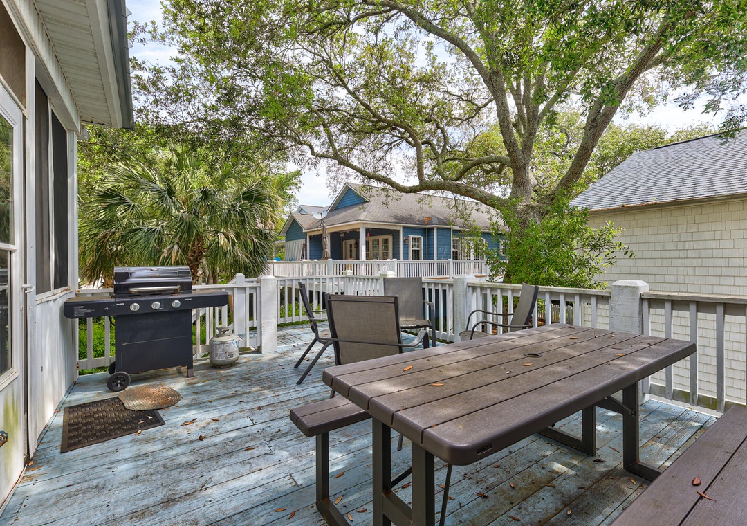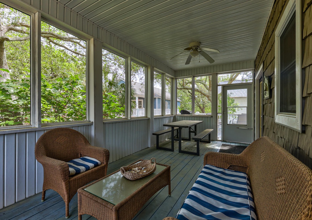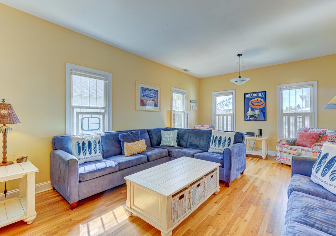 Time to Unwind is the perfect getaway for families and friends looking for relaxation and fun in a well-appointed, pet-friendly home. This spacious retreat features central heating and air, complimentary Wi-Fi, and a fenced-in backyard, making it ideal for both comfort and convenience. The screened-in deck offers a serene spot to enjoy the fresh air, while the grill and beach chairs provide everything you need for outdoor enjoyment. Inside, guests can gather in the inviting living room, which boasts a large sectional, additional seating, and a smart TV with cable and DVR. For entertainment, a ping pong table adds an extra element of fun to your stay.