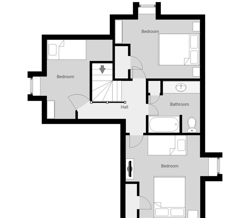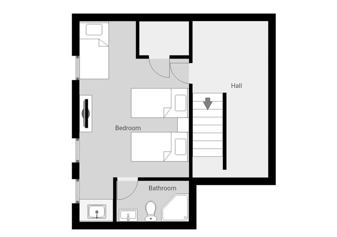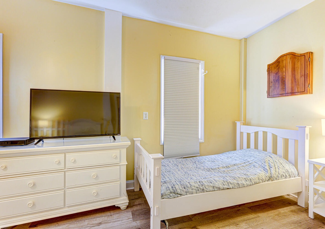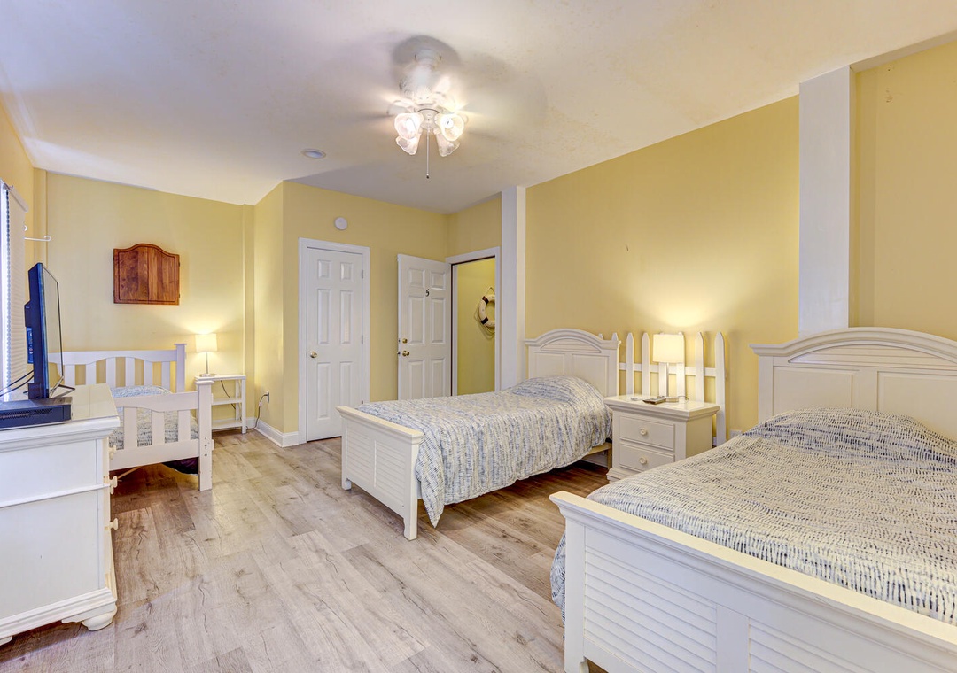 1st Floor Twin Beds (3) Ceiling Fan Smart TV HVAC Wall Unit Sink Area Attached Bathroom