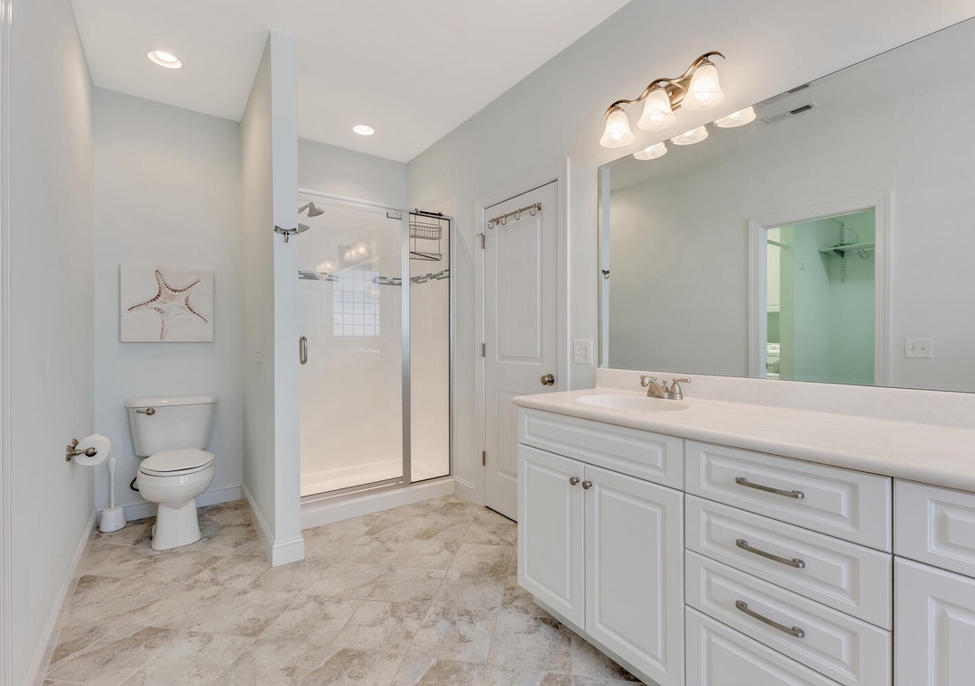 Primary suite with attached bathroom.