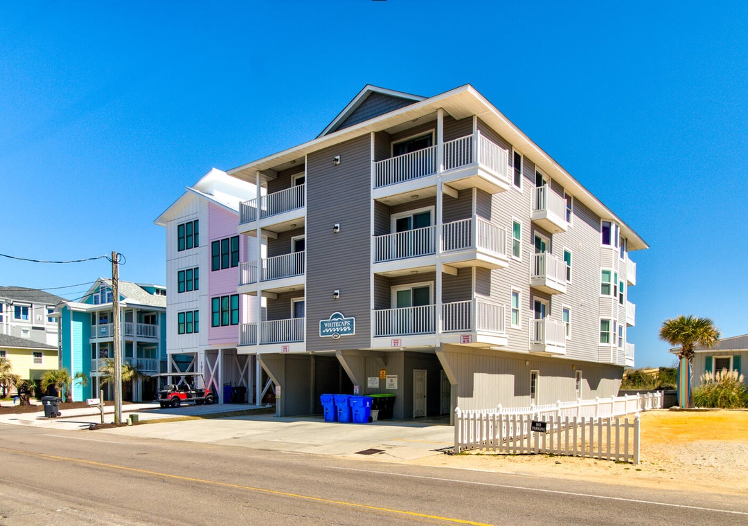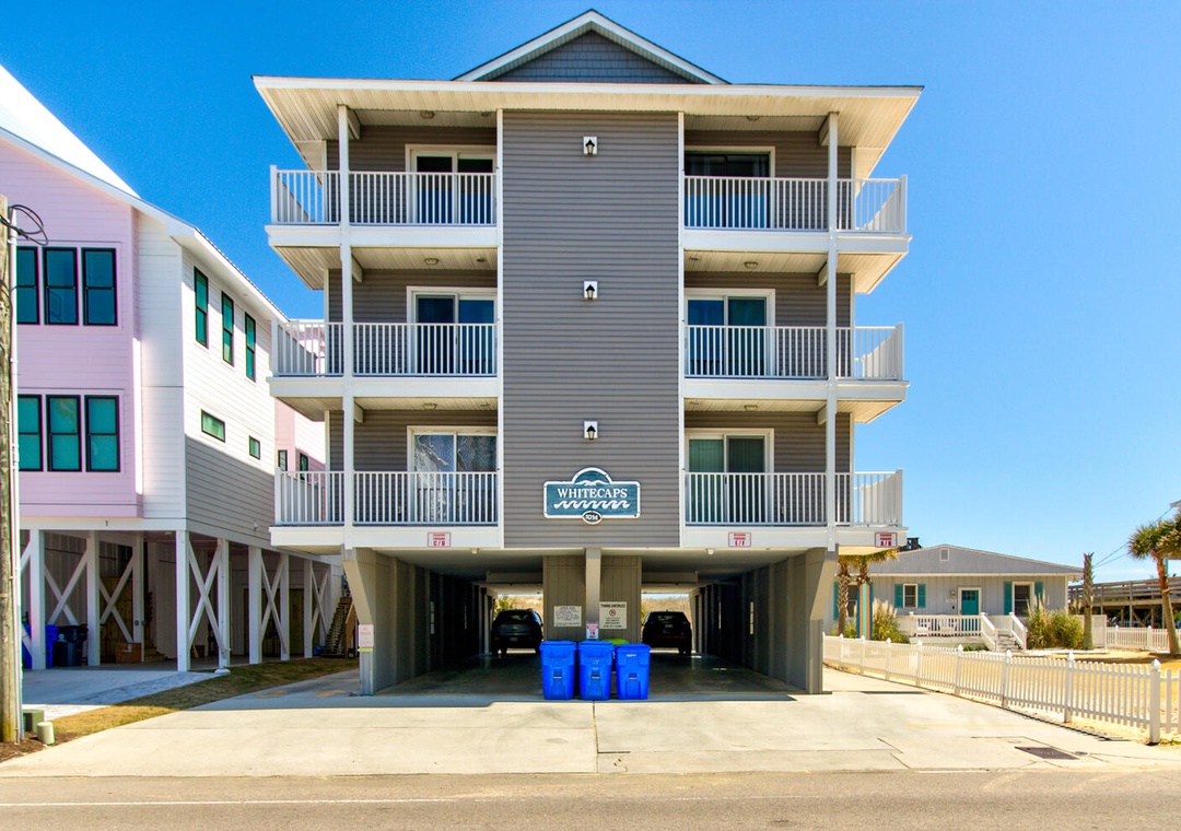 Parking is suitable for COMPACT to MID-SIZE vehicles only. Oversize vehicles may not fit and are the responsibility of the vehicle’s owner to find adequate parking if the vehicle does not fit at the unit’s provided parking spaces. Carolina Beach Realty is not responsible for finding additional parking for guests who bring more cars than allowed at the property. Whitecaps HOA does not allow golf carts.