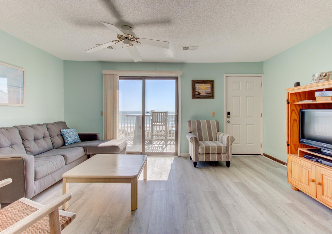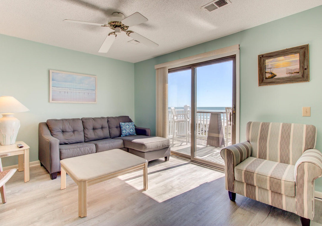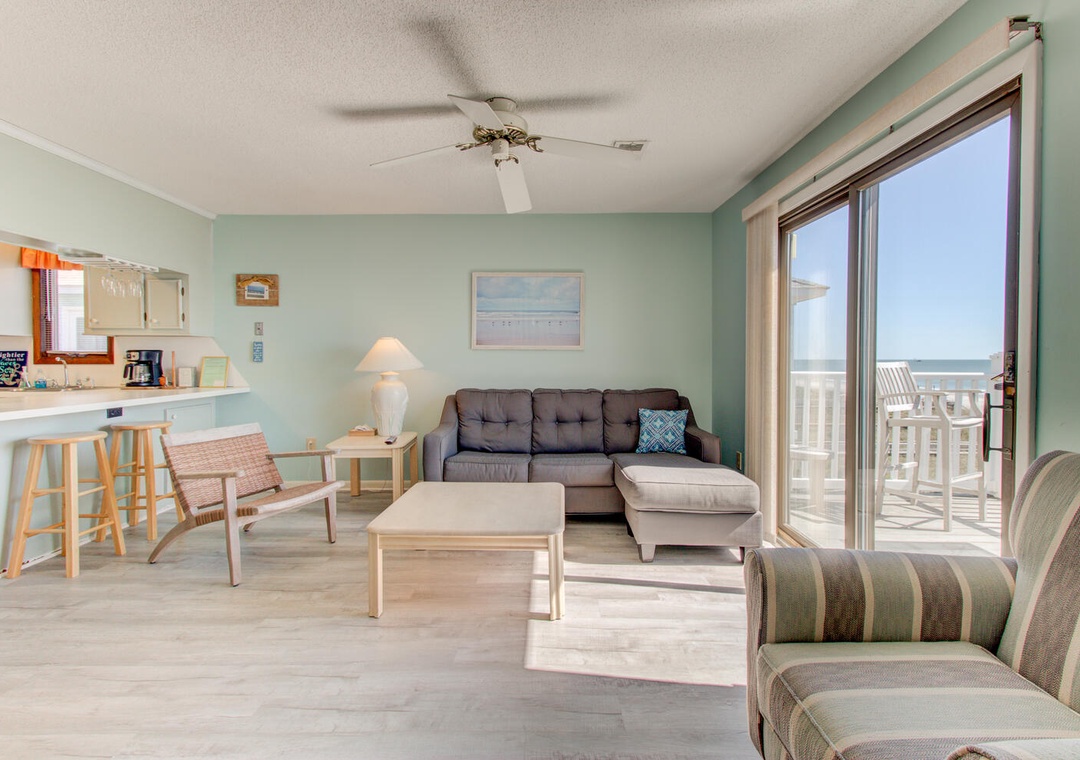 This unit was very clean and comfortable. We checked in after hours and our door code didn’t work, but the after hours folks were helpful and we had a new code and were inside in about 10 min. This is ocean front and the beach view and access are great. This is on the third floor, but the stairs were not an issue for anyone in our family. There are two parking passes for this unit. One parking space is under the building, but it is very difficult to get a large SUV around other tenants cars and into the designated spot. We decided to just park in the extra lot across the street where there was plenty of room. We were only there for a short weekend and didn’t cook any meals, but the kitchen seemed to have all the basic needs. The linen service brings very basic towels, so if you’re picky bring your own. The cleaning service does a wonderful job- it was spotless, but they don’t leave any bar soaps (like hotel size) or starter/sample packs of dishwasher detergent, so make sure to pack all toiletries and a few dishwashing/ laundry pods to get by until your grocery run. The location is great- far enough from the boardwalk to have a quite beach day, but close enough to walk (15min walk) if you want some excitement and avoid the parking fees. Would stay here again.- Reviewed On: 6/7/2022