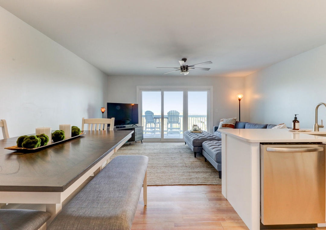 I really enjoyed my stay here. The location can't be beat. You're right on an amazing beach that wasn't crowded at all, even in August. Spacious porch that overlooks the ocean is great for sunrises and sunsets. Super easy access with the key pad. Comfy couch. Nice kitchen. I would recommend bringing your own paper towels + bath towels, as the quality there could be improved.- Reviewed On: 8/26/2024