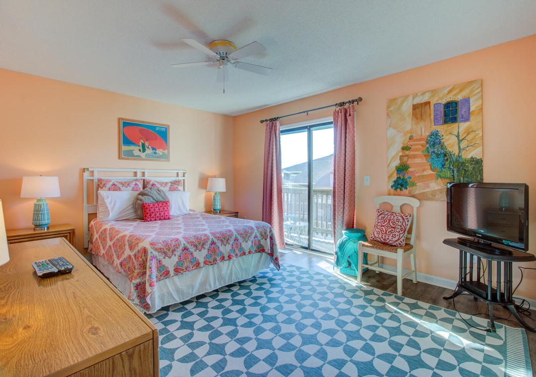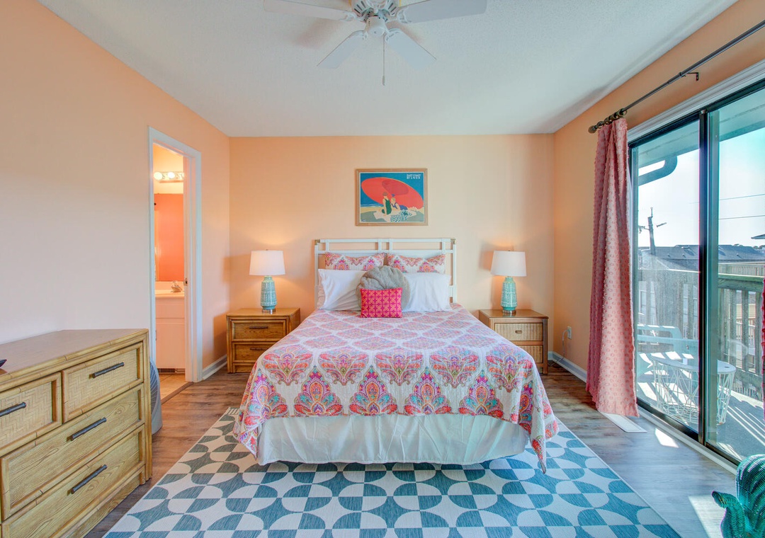 Primary Suite: Queen Bed with Deck Access