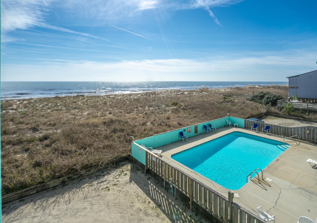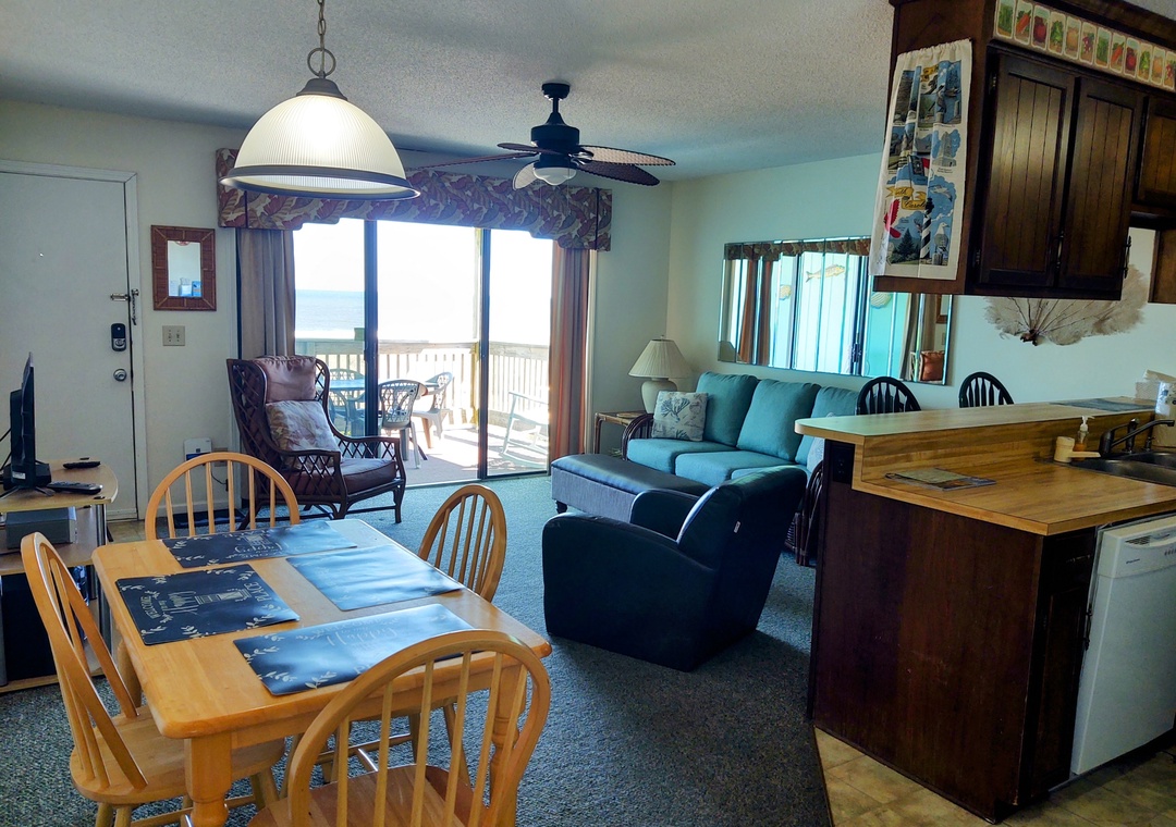 This second-floor condo ensures a comfortable and convenient stay with complimentary Wi-Fi, central heating and air, a full-size washer and dryer, and access to the community pool. Whether you’re lounging on the deck, exploring the Boardwalk, or enjoying shared beach access, this oceanfront retreat is the perfect destination for your next coastal getaway.