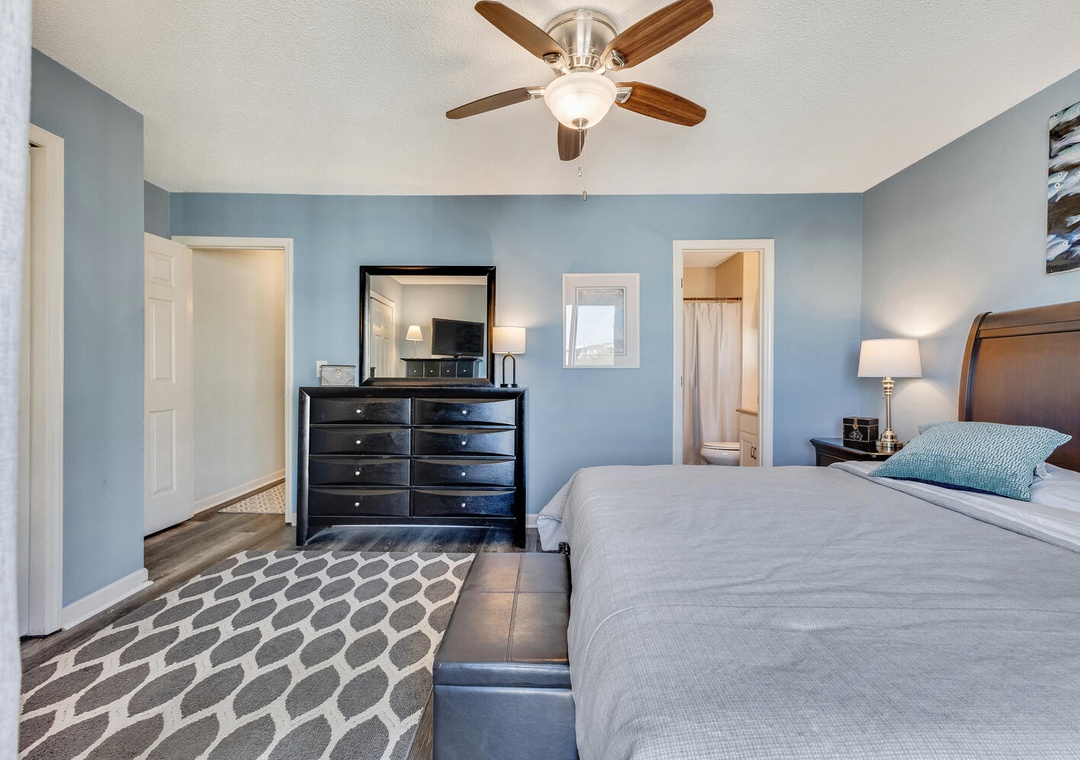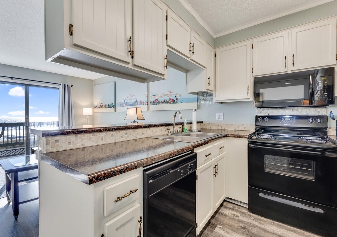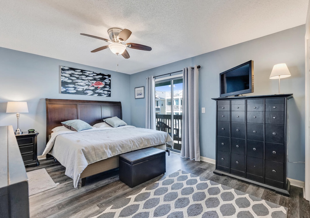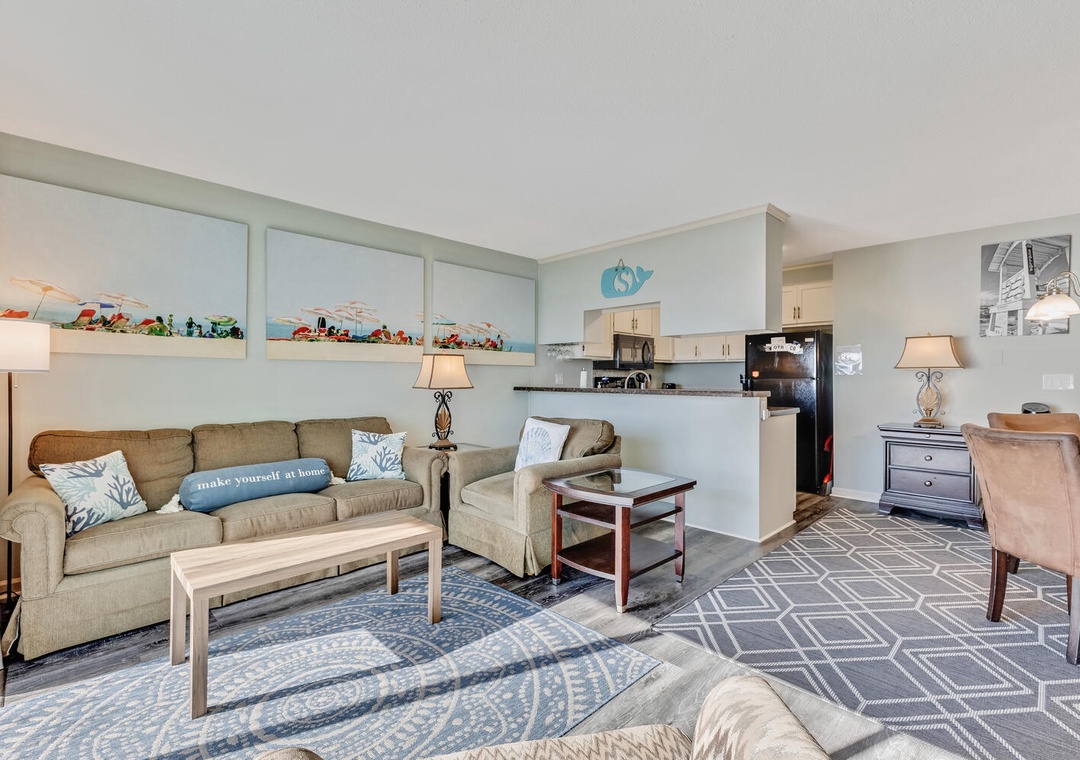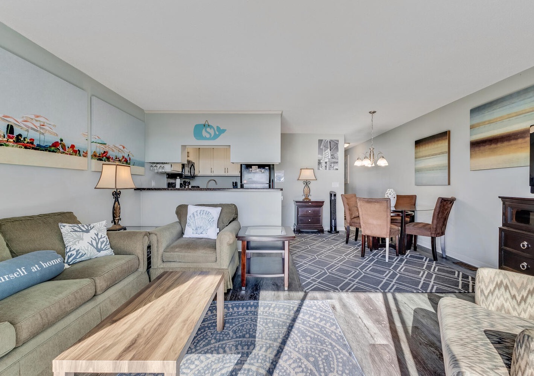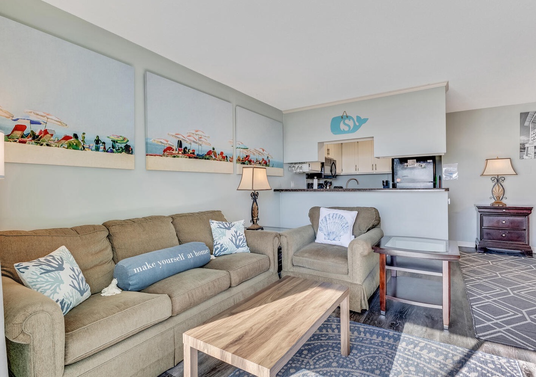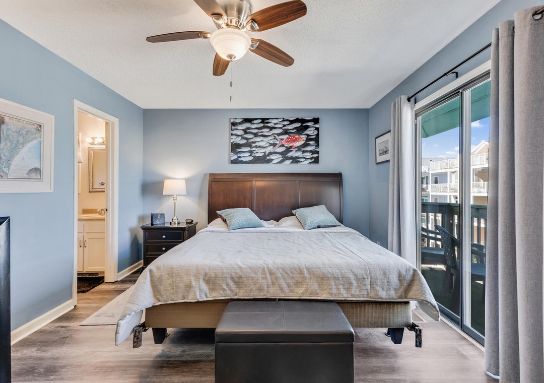 The condo features a spacious oceanfront deck with seating for 4—perfect for morning coffee or sunset cocktails—as well as a second balcony off the primary bedroom with street views.