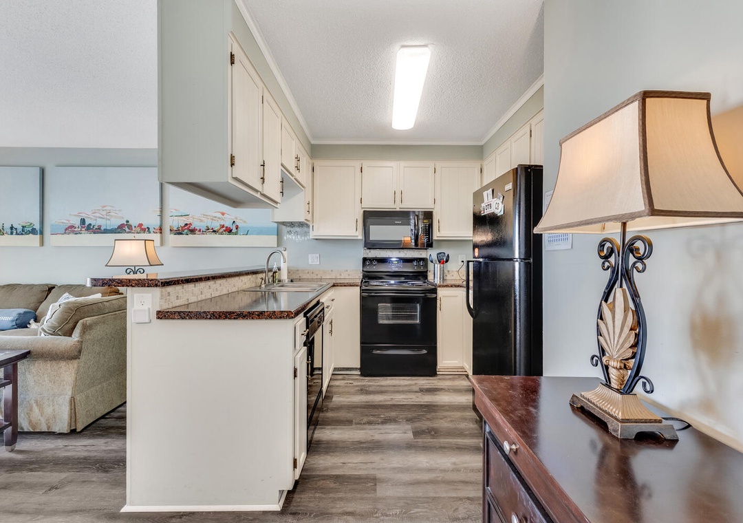 Inside, enjoy an open living space with comfortable seating, a flat-screen TV with cable, DVD, and VCR, and a fully equipped kitchen with a dining area for 4 and bar seating for 2. The unit is on the third floor and includes access to a community pool.