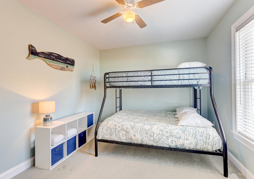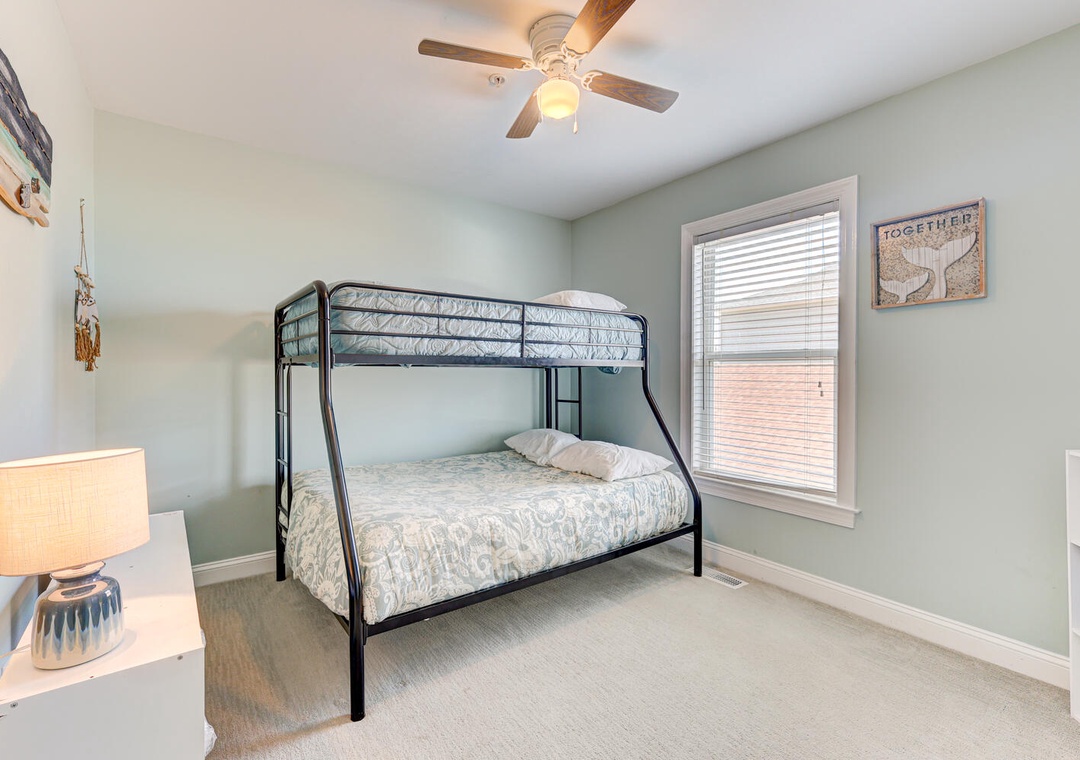 Twin over Full Bunk Beds(Sleeps 2) Top Bunk is not usable Ceiling Fan Attached Bathroom