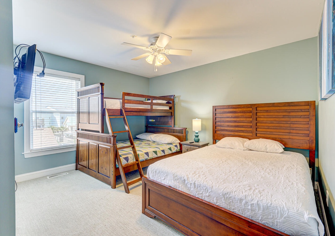 Twin over Full Bunk Bed(Sleeps 2) Top Bunk is not useable Queen Bed Smart TV Ceiling Fan Attached Bathroom
