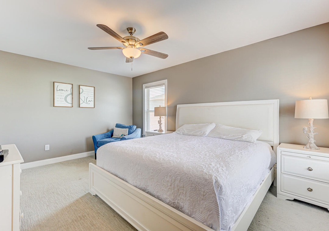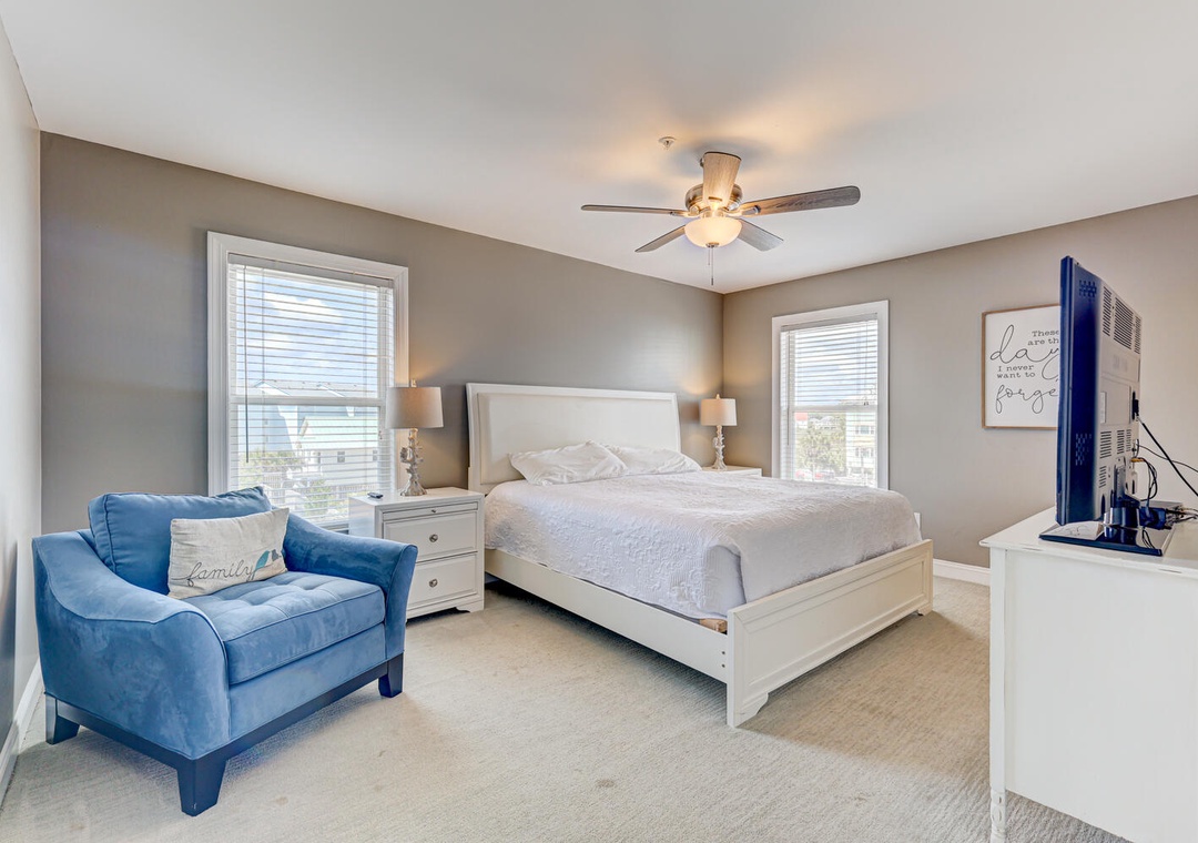 King Bed Smart TV Walk-in Closet Ceiling Fan Attached Bathroom